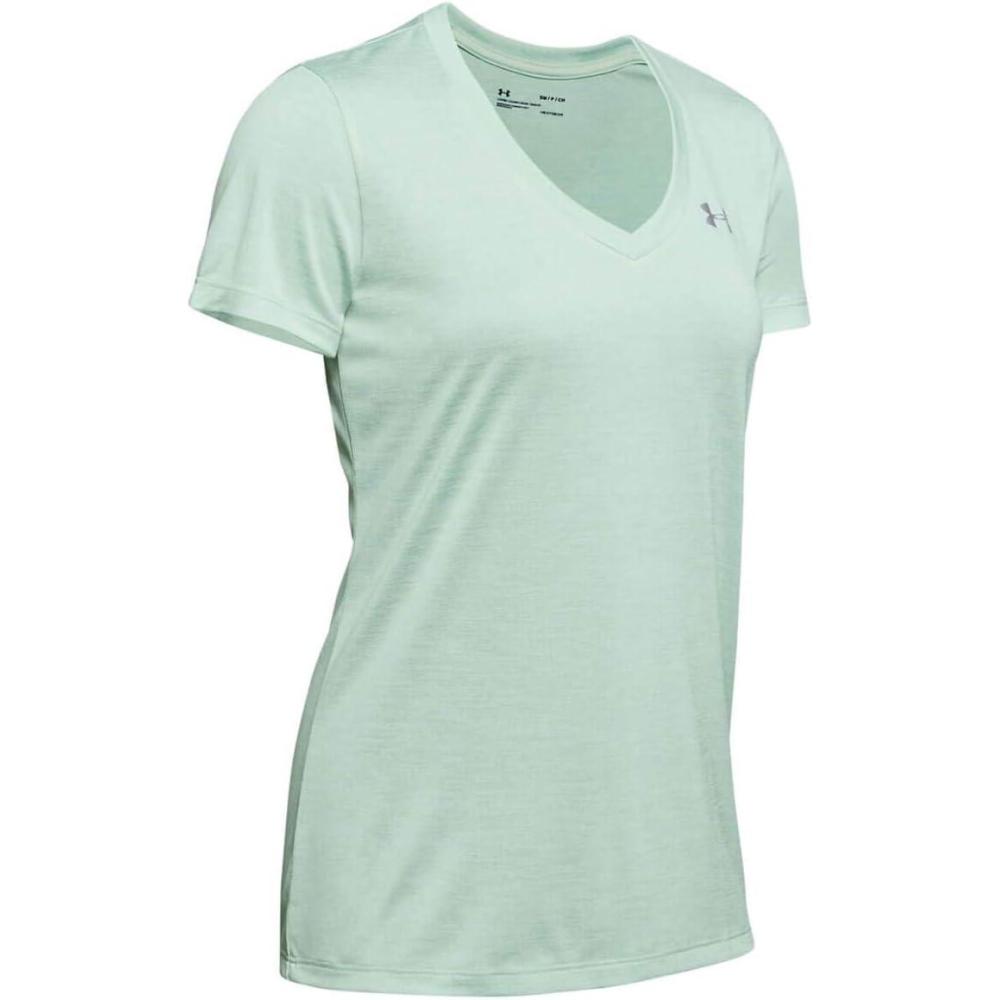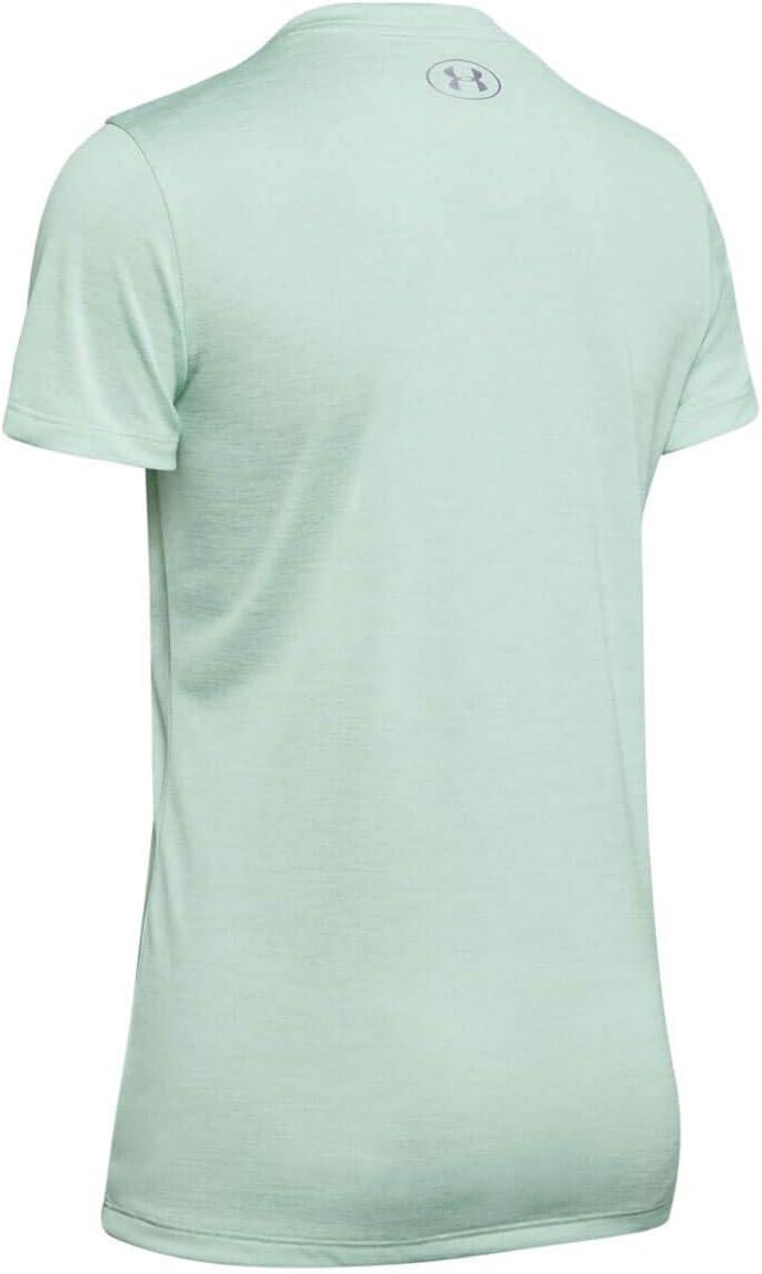 Under Armour Womens Tech V-Neck Twist Short-Sleeve T-Shirt(Atlas Green (189)/Metallic Silver)