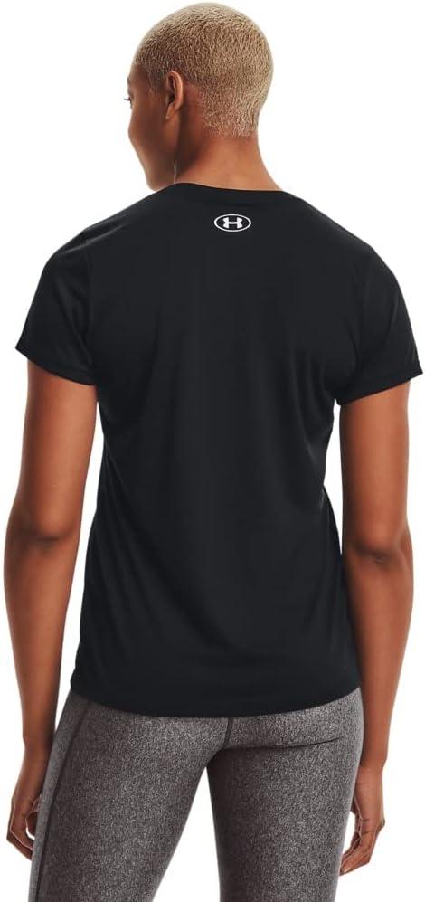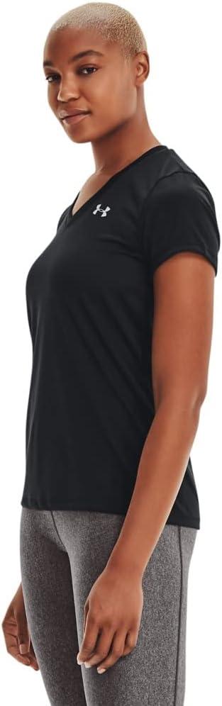 Under Armour Womens Tech V-Neck Twist Short-Sleeve T-Shirt(Black/ Metallic Silver)