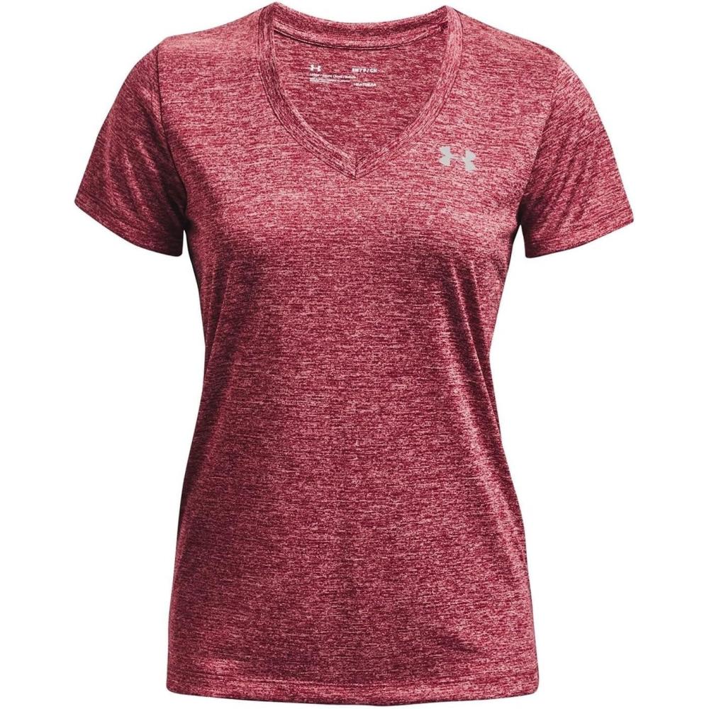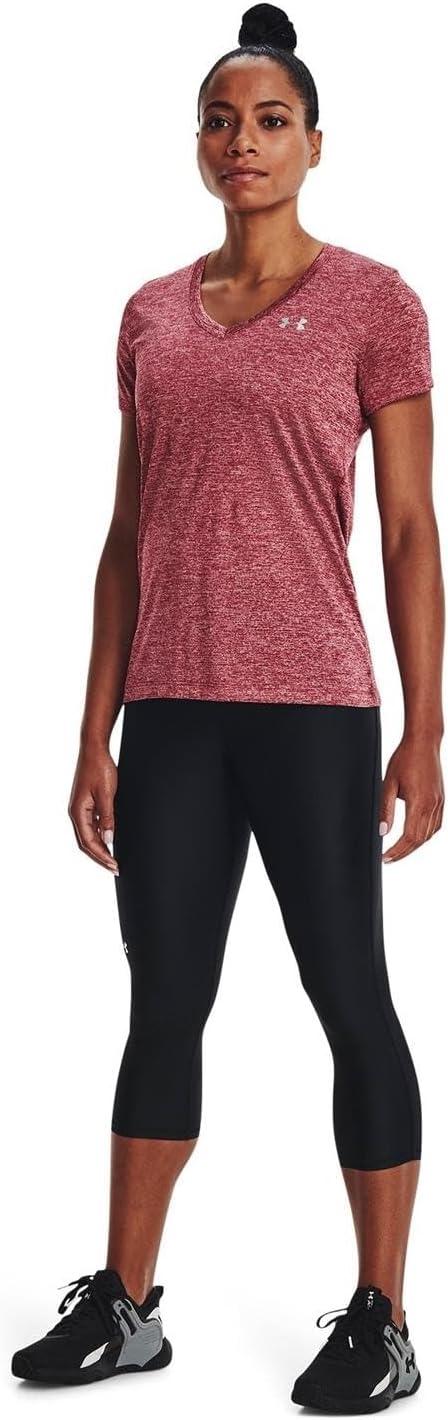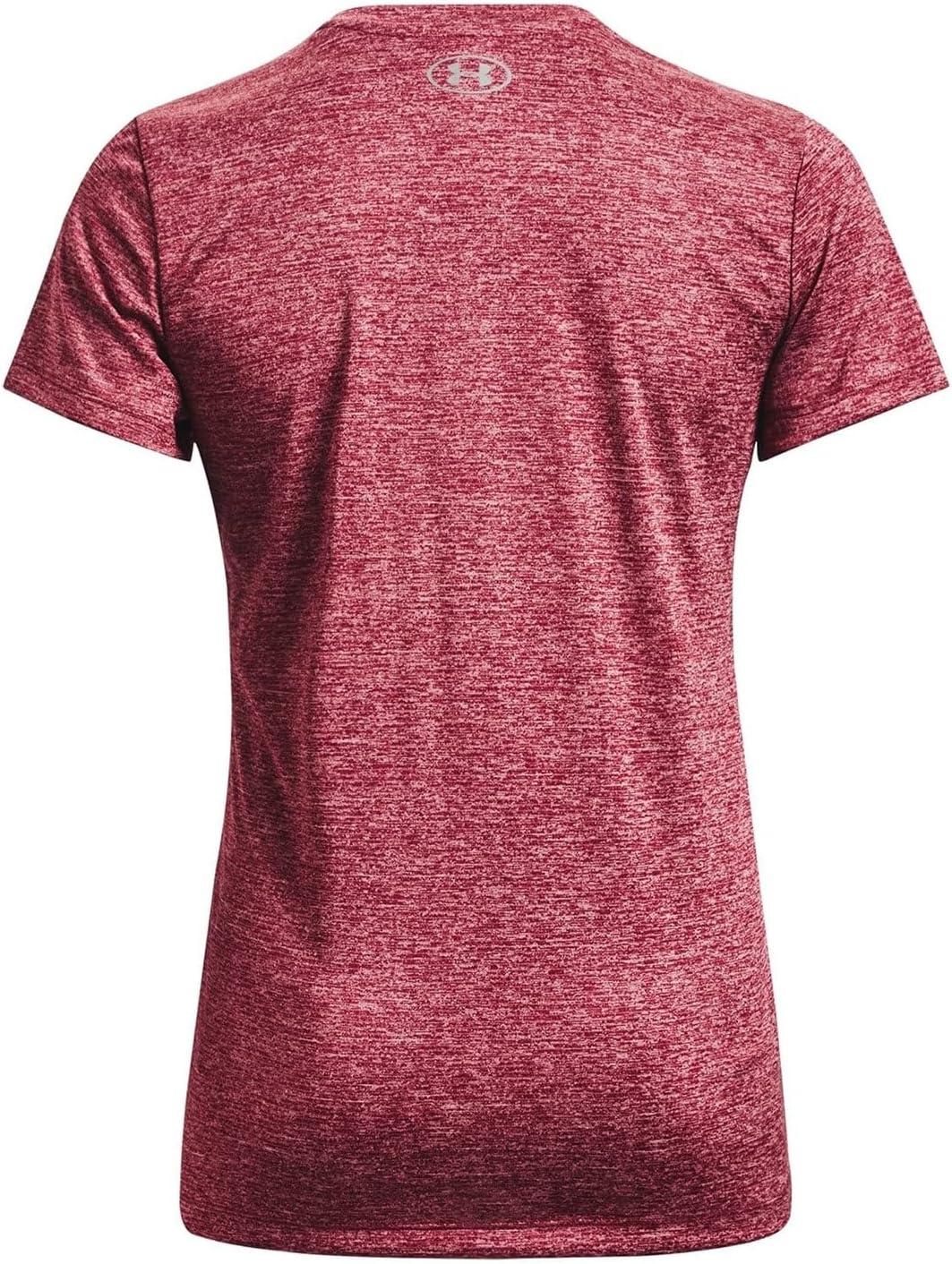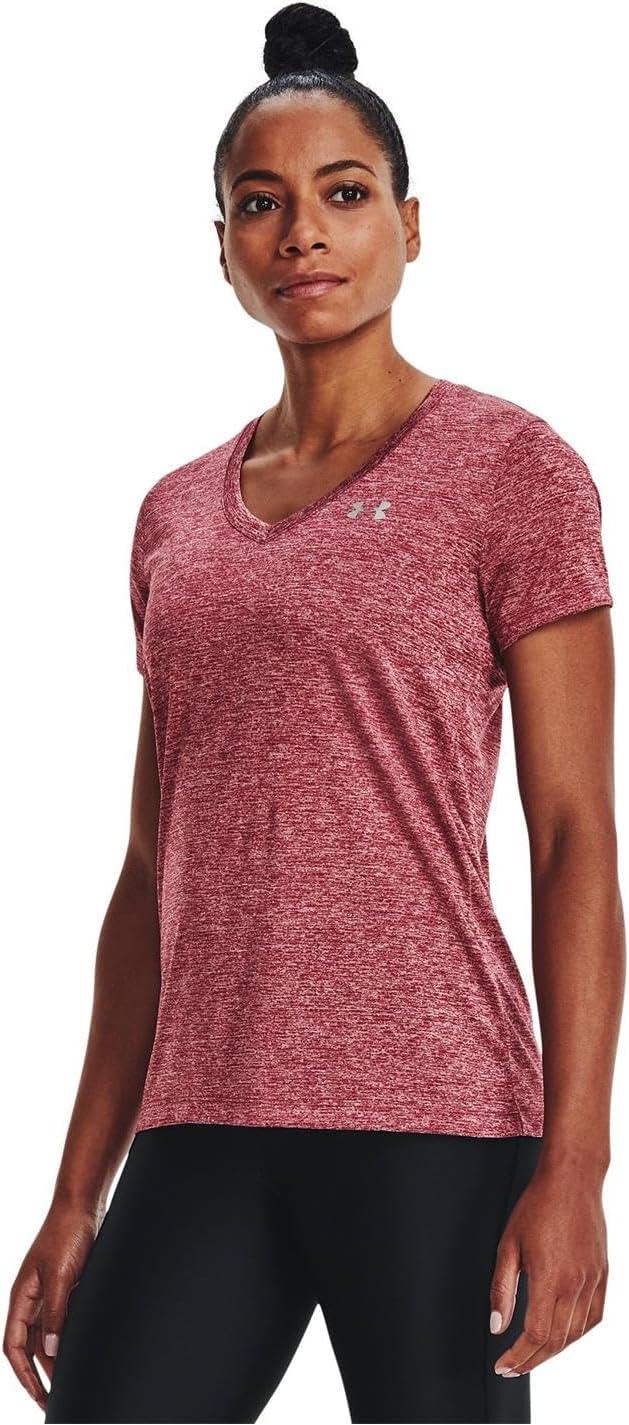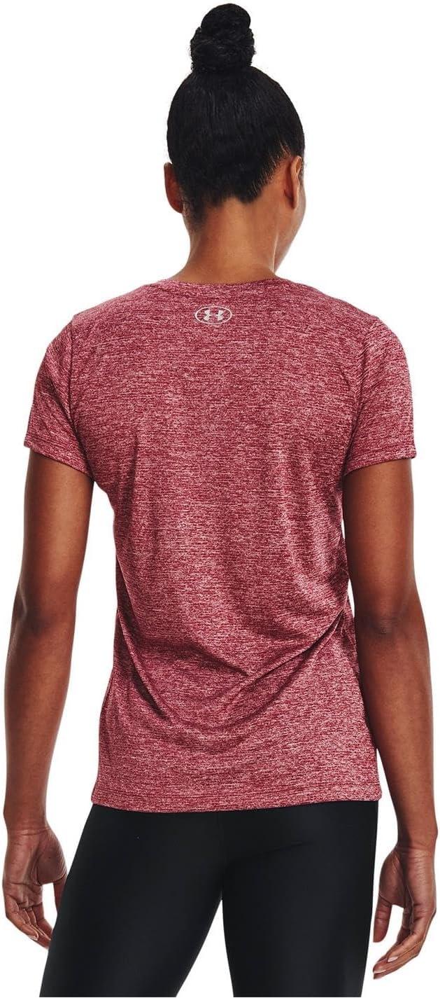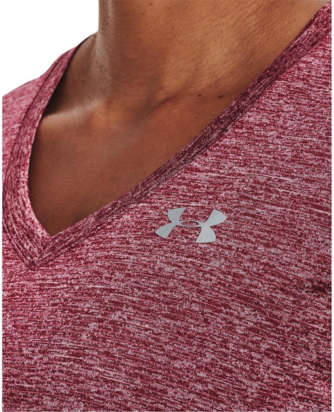 Under Armour Womens Tech V-Neck Twist Short-Sleeve T-Shirt(Black Rose (664)/Metallic Silver)