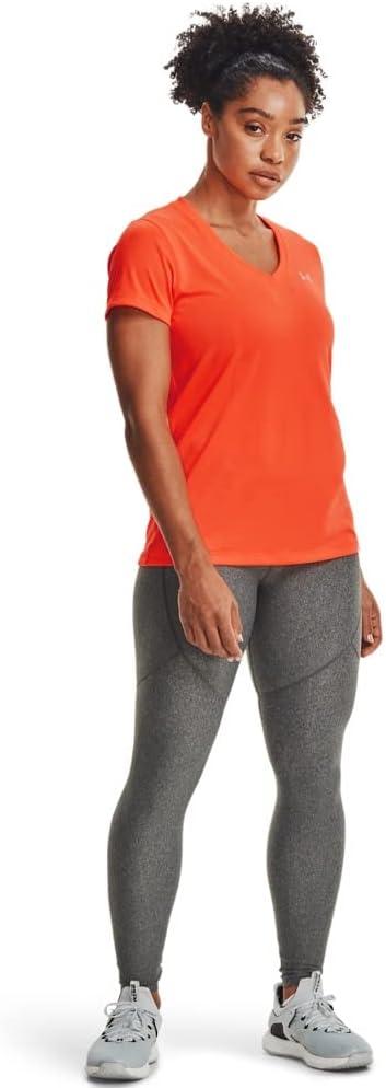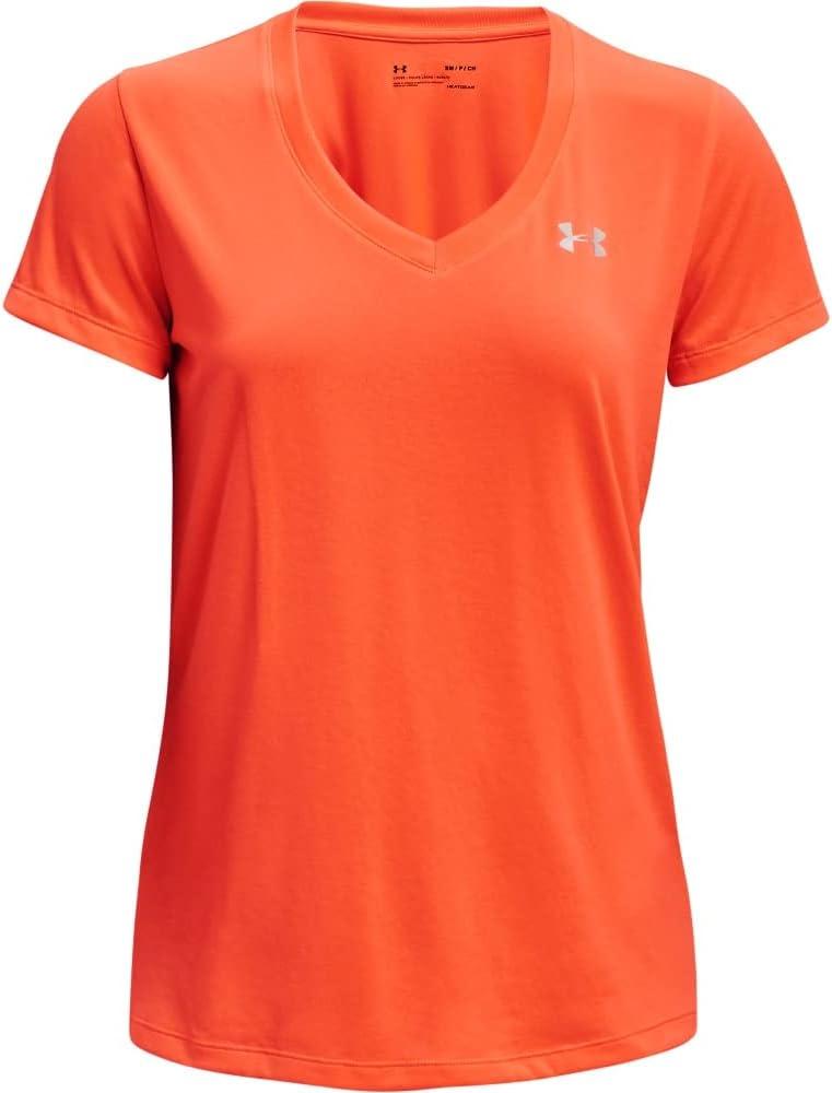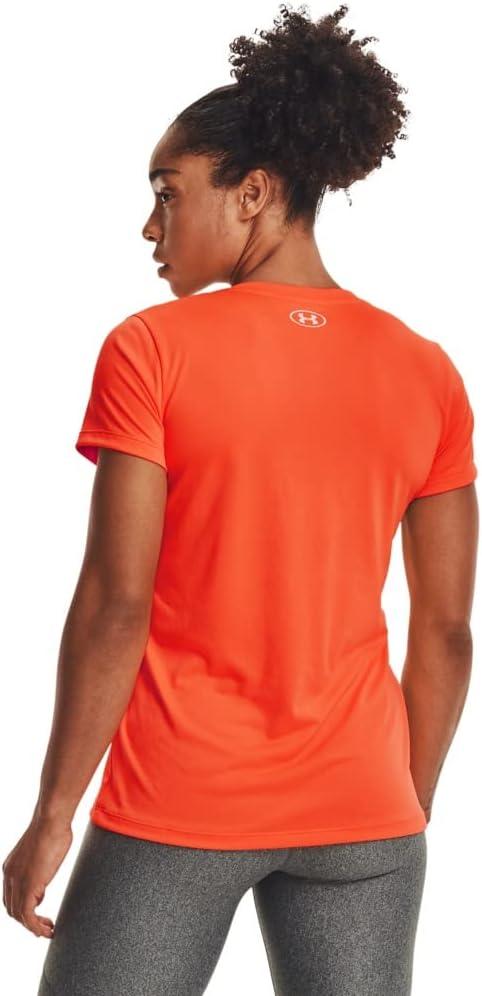 Under Armour Womens Tech V-Neck Twist Short-Sleeve T-Shirt(Blaze Orange (825)/ Metallic Silver)