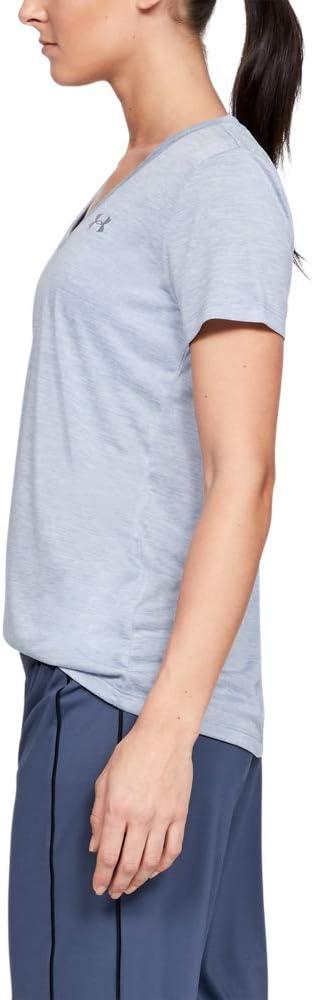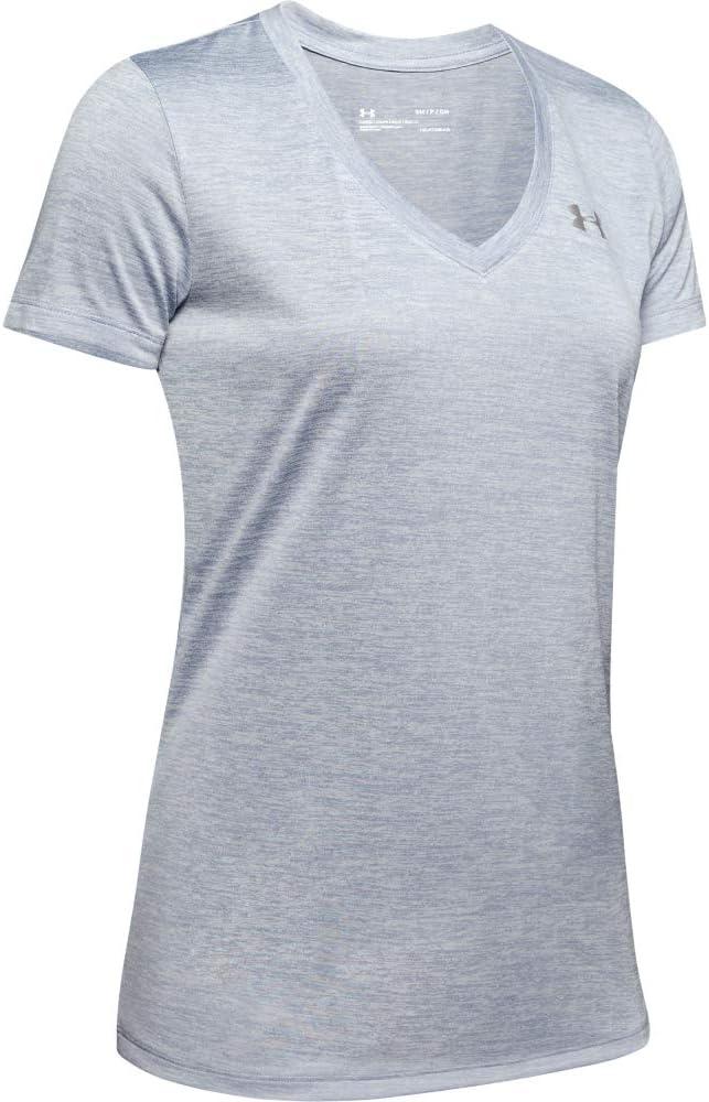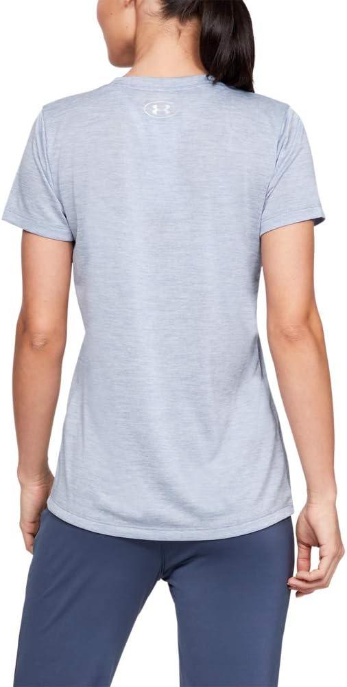 Under Armour Womens Tech V-Neck Twist Short-Sleeve T-Shirt(Blue Heights (448)/Metallic Silver)