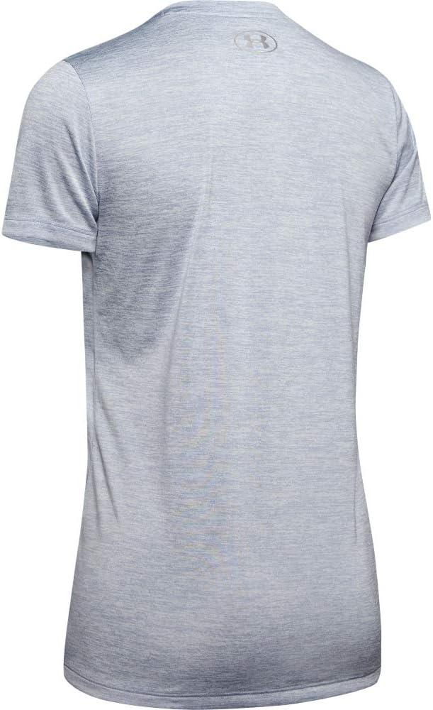 Under Armour Womens Tech V-Neck Twist Short-Sleeve T-Shirt(Downpour Gray (044)/Metallic Silver)