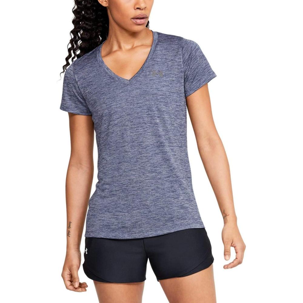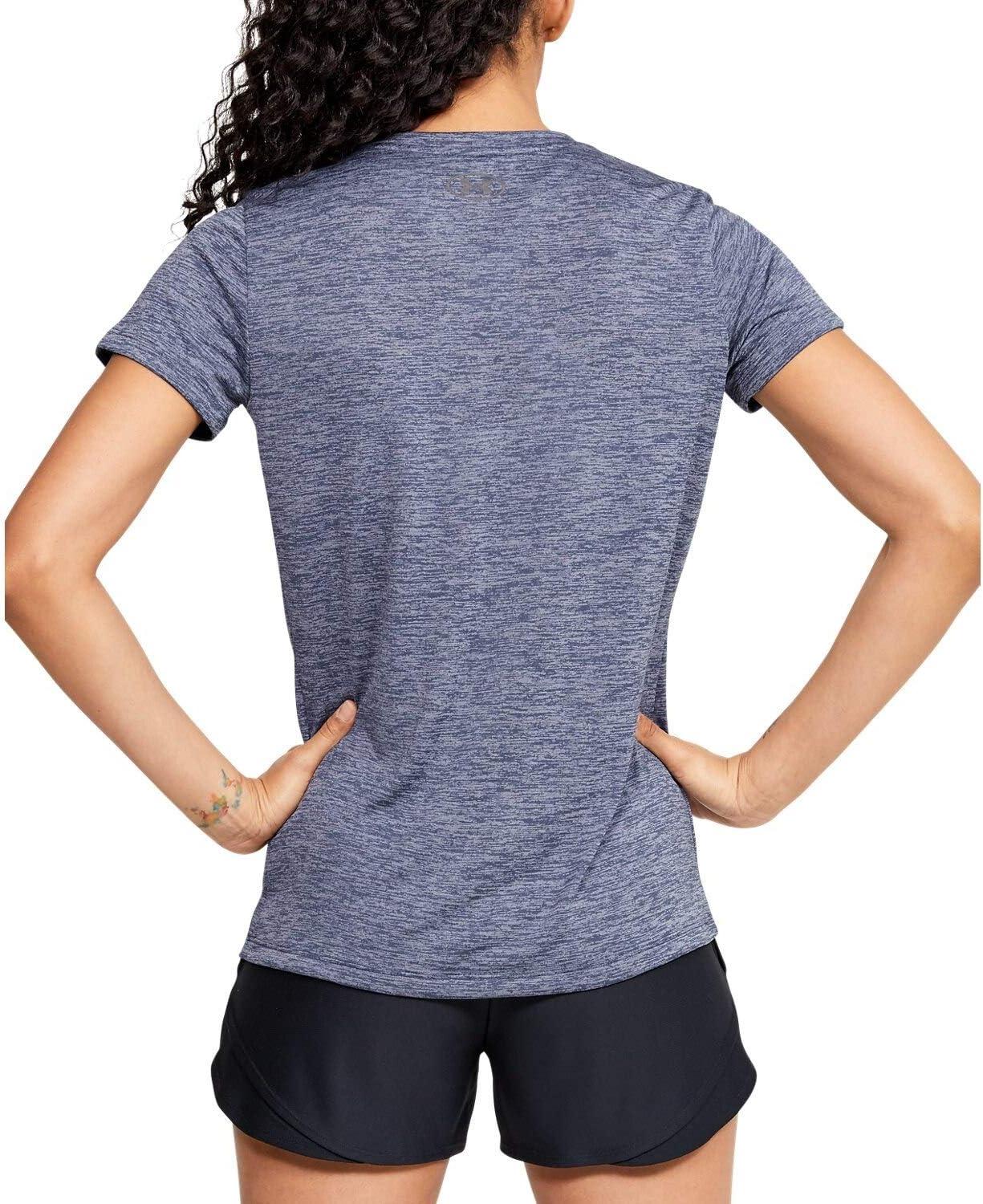 Under Armour Womens Tech V-Neck Twist Short-Sleeve T-Shirt(Blue Ink (497)/Metallic Silver)