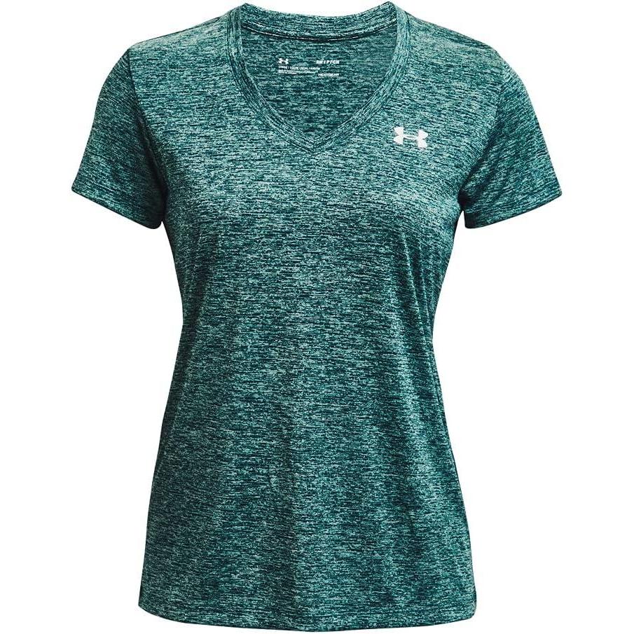 Under Armour Womens Tech V-Neck Twist Short-Sleeve T-Shirt(Blue Topaz (431)/Metallic Silver)