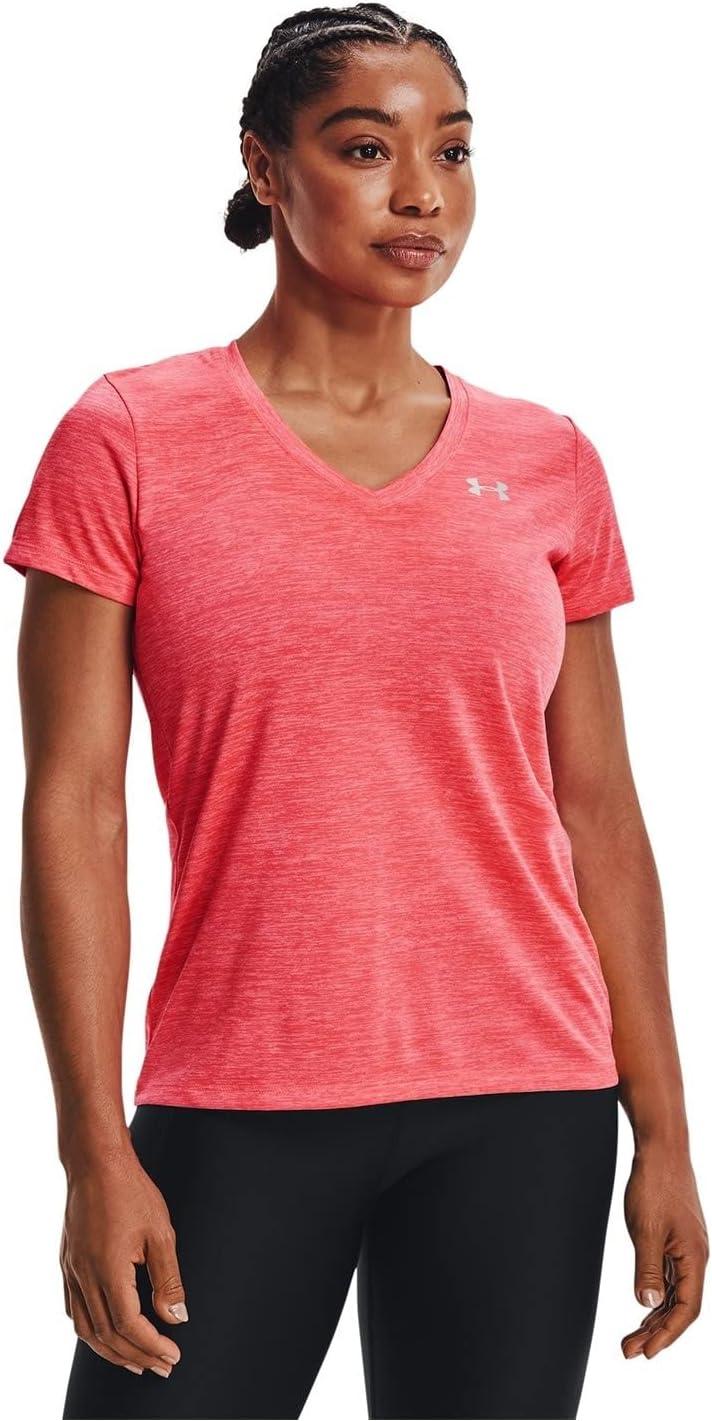 Under Armour Womens Tech V-Neck Twist Short-Sleeve T-Shirt(Cerise (655)/Metallic Silver)