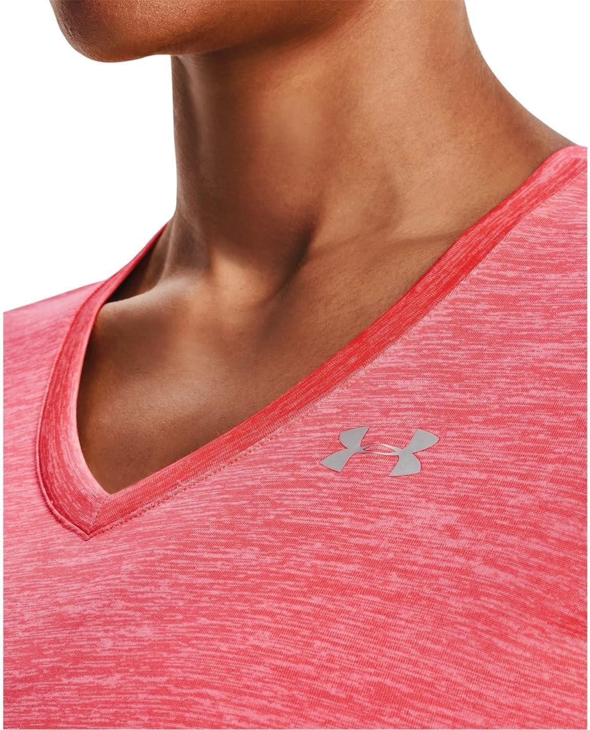 Under Armour Womens Tech V-Neck Twist Short-Sleeve T-Shirt(Brilliance (821)/Metallic Silver)