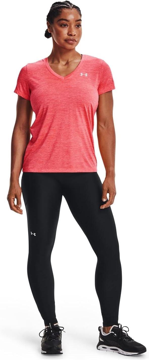 The Under Armour women's UA Twisted Tech V-neck T-shirt is loose, light, and it keeps you cool. It's part of our original go-to training gear, and it's everything you need. UA Tech™ fabric is quick-drying, ultra-soft & has a more natural feel. Material wicks sweat & dries really fast. 4-way stretch construction moves better in every direction. Deep V-neck collar. Allover twist effect. Loose:Fuller cut for complete comfort. 100% Polyester.