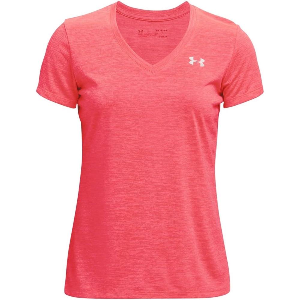 imageUnder Armour Womens Tech VNeck Twist ShortSleeve TShirtCerise 655Metallic Silver