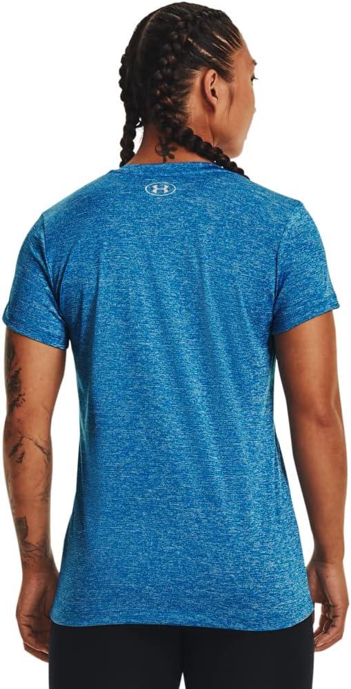 Under Armour Womens Tech V-Neck Twist Short-Sleeve T-Shirt(Cruise Blue (900)/Metallic Silver)