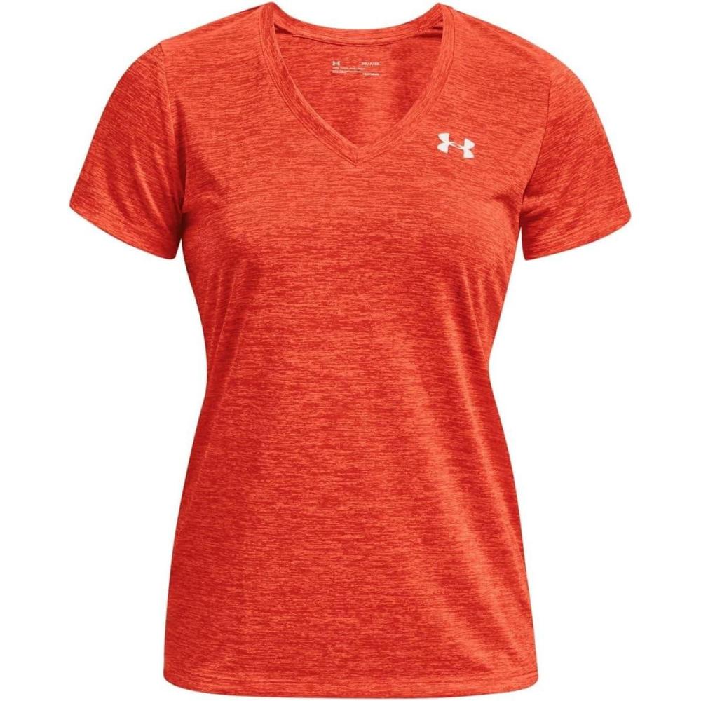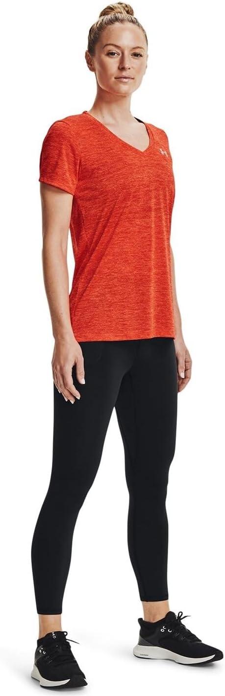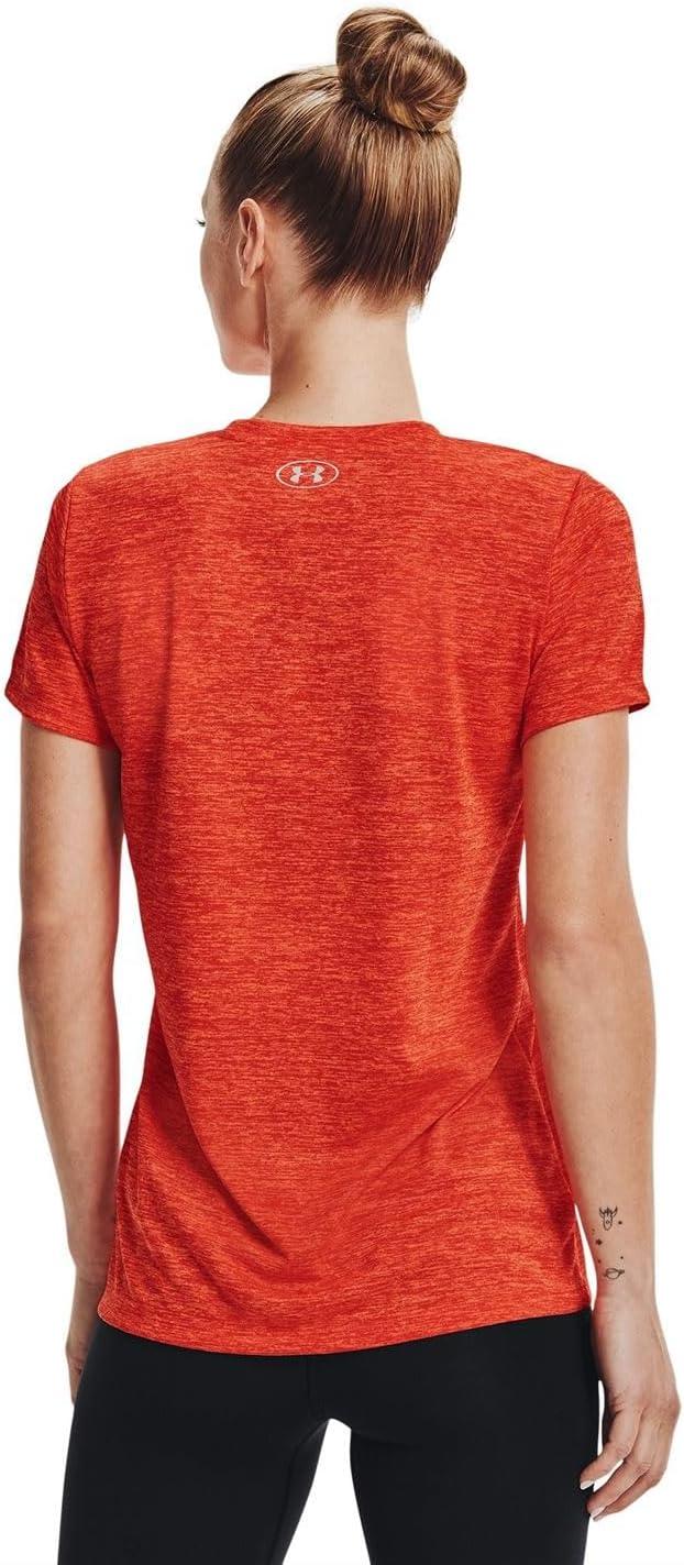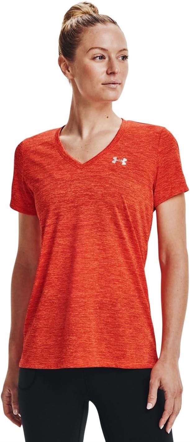 Under Armour Womens Tech V-Neck Twist Short-Sleeve T-Shirt(Dark Orange (861)/Metallic Silver)