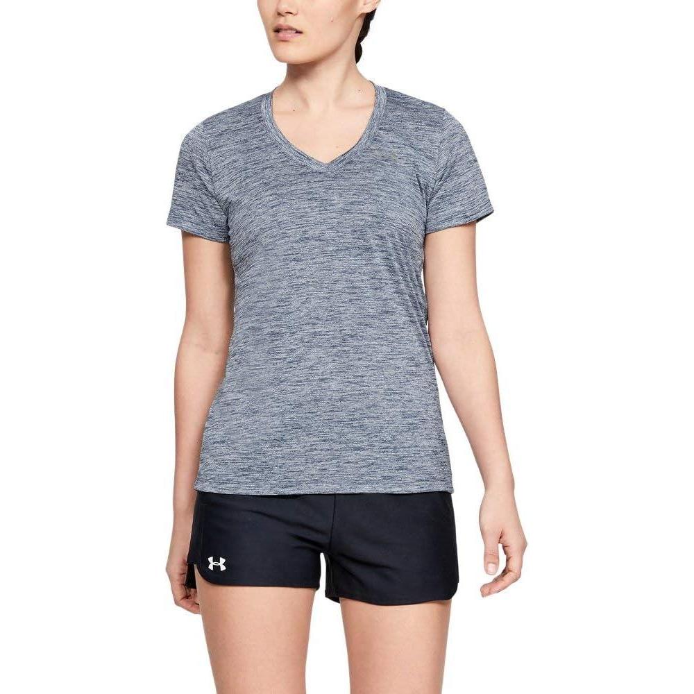 Under Armour Womens Tech V-Neck Twist Short-Sleeve T-Shirt(Cruise Blue (900)/Metallic Silver)