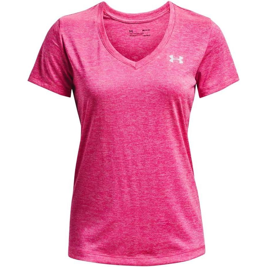 Under Armour Womens Tech V-Neck Twist Short-Sleeve T-Shirt(Electro Pink (695)/Metallic Silver)