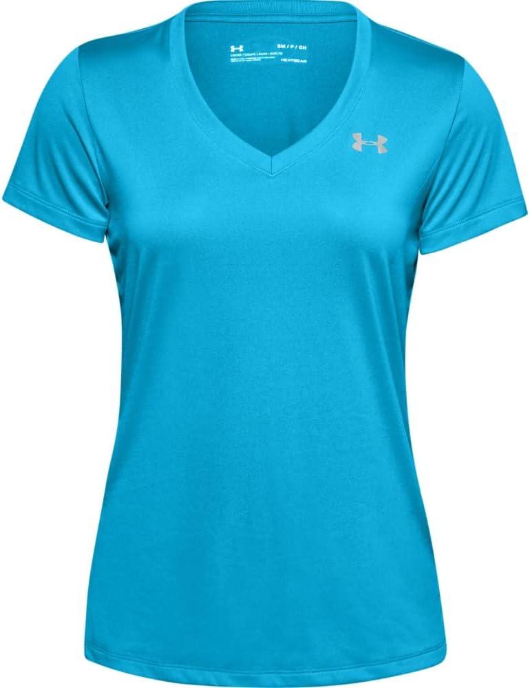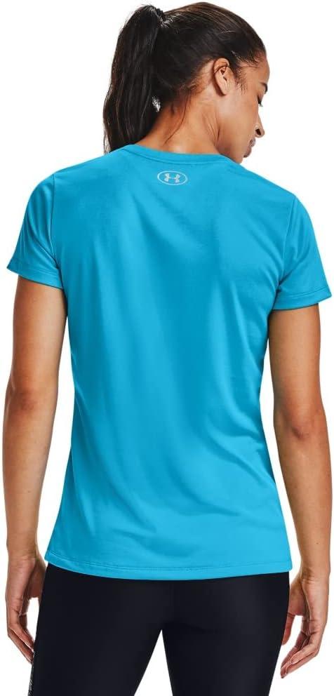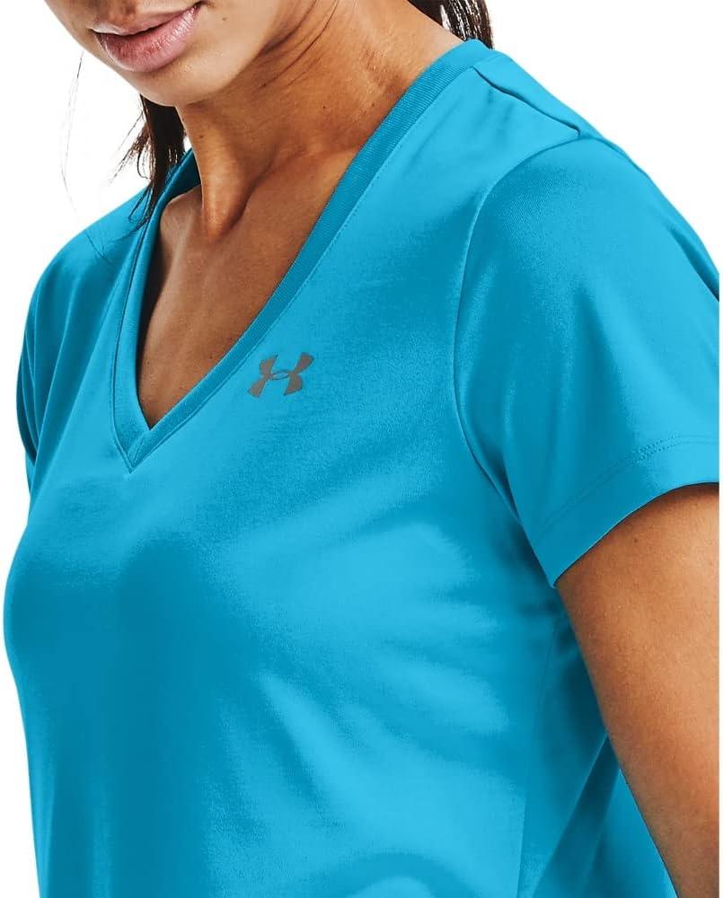 Under Armour Womens Tech V-Neck Twist Short-Sleeve T-Shirt(Equator Blue (417)/Metallic Silver)