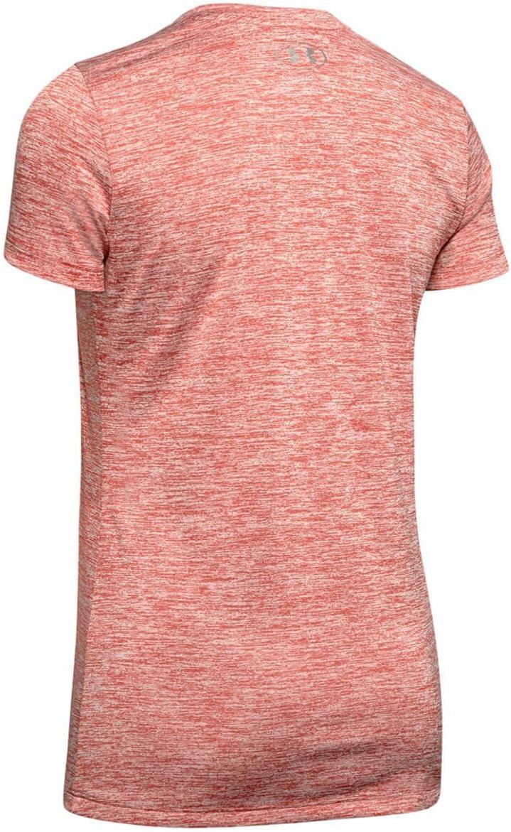 Under Armour Womens Tech V-Neck Twist Short-Sleeve T-Shirt(Fractal Pink (692)/Metallic Silver)