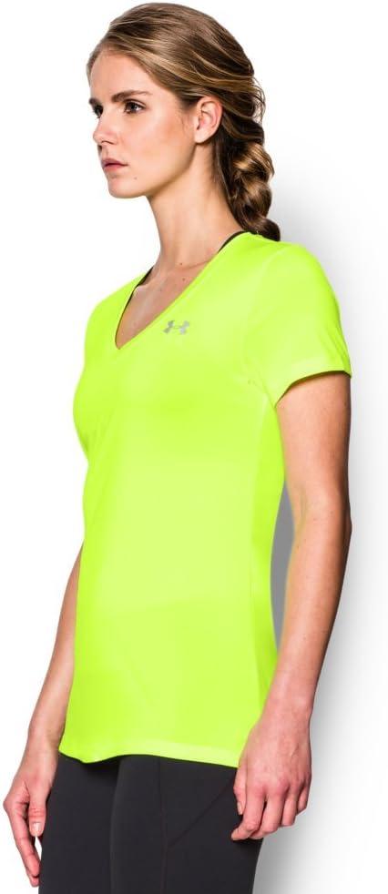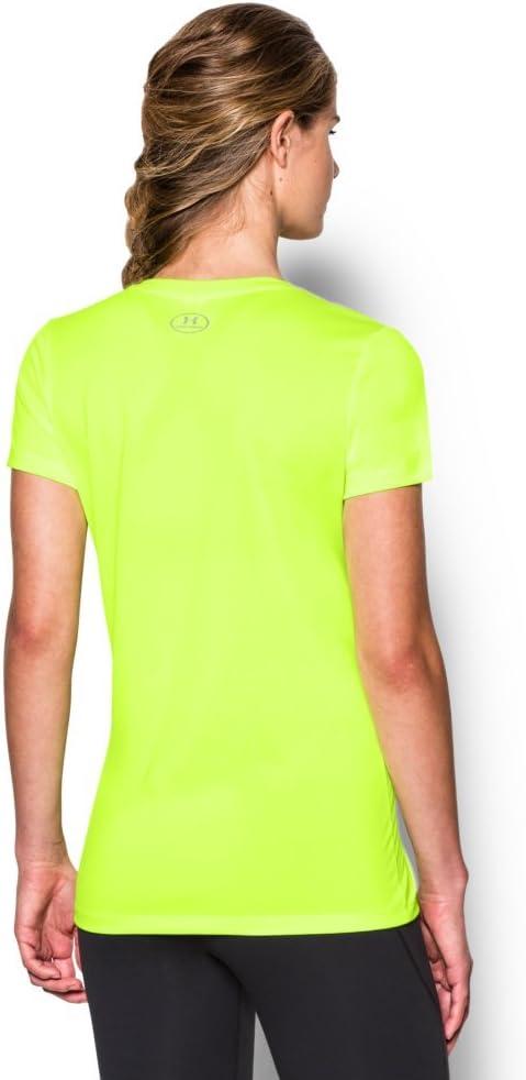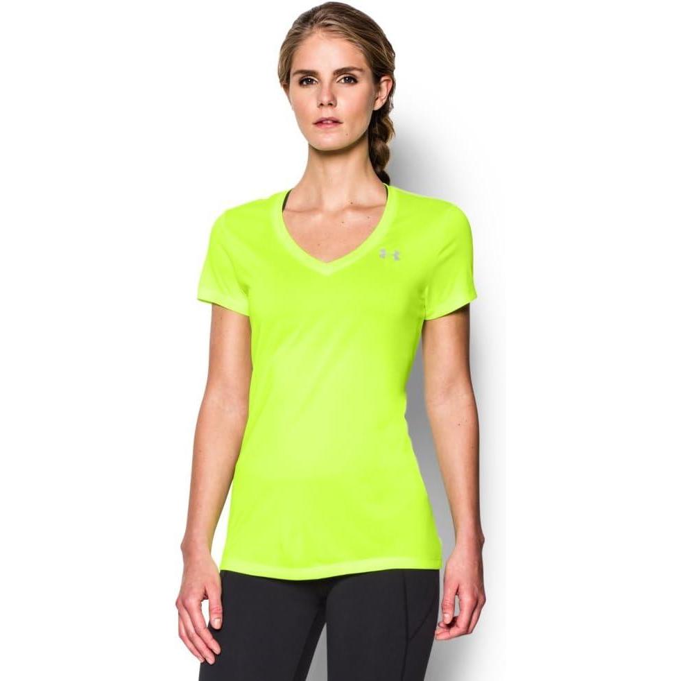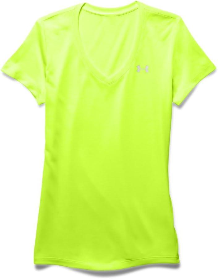 Under Armour Womens Tech V-Neck Twist Short-Sleeve T-Shirt(Fuel Green (363)/Metallic Silver)