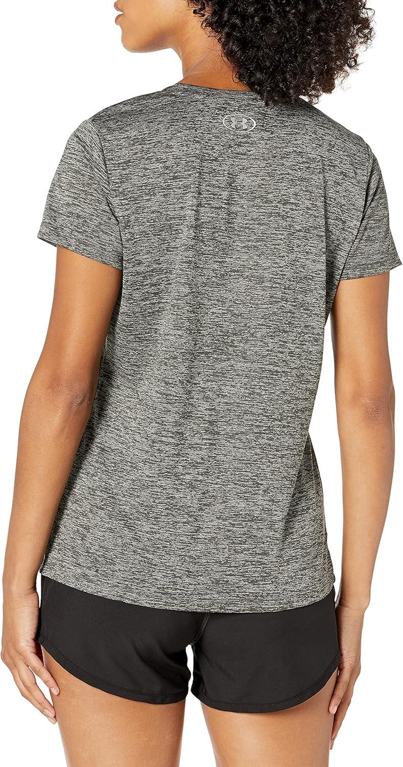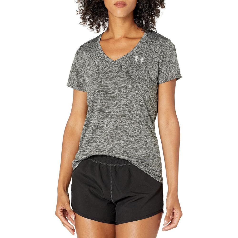 Under Armour Womens Tech V-Neck Twist Short-Sleeve T-Shirt(Jet Gray (011)/Metallic Silver)