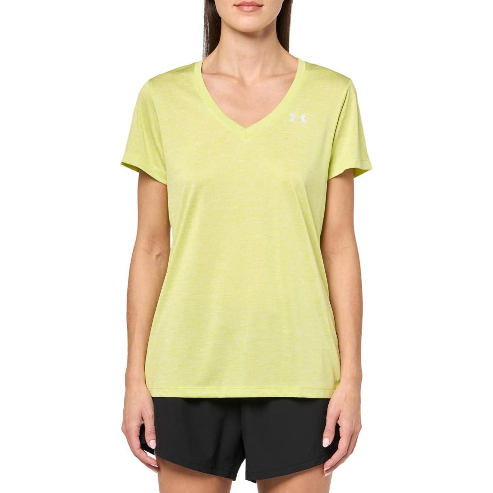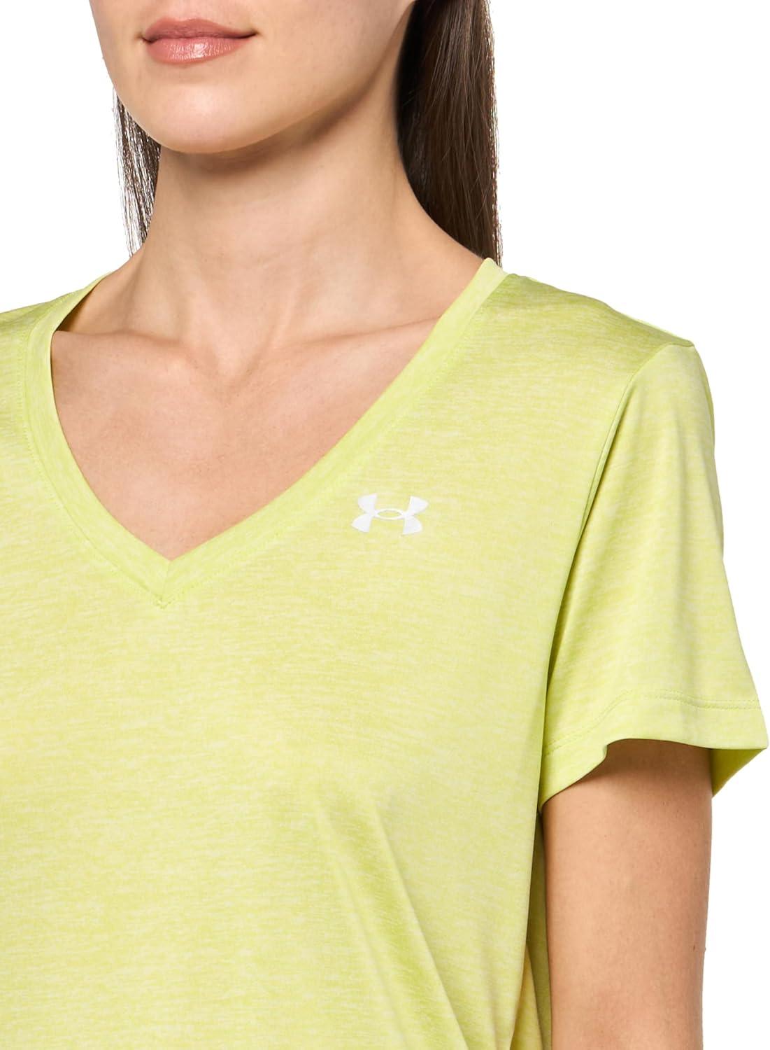 Under Armour Womens Tech V-Neck Twist Short-Sleeve T-Shirt(Lime Light (884)/Metallic Silver)