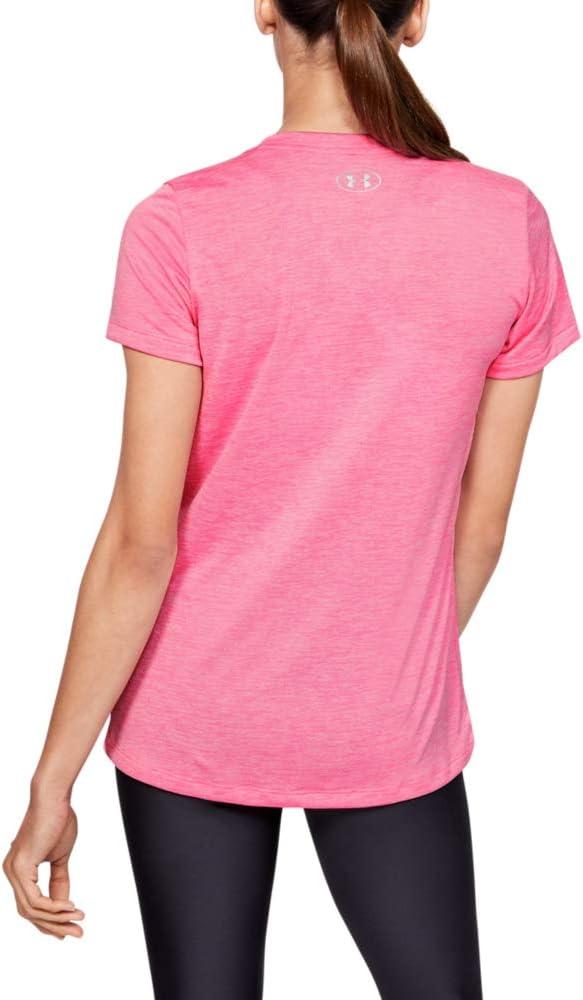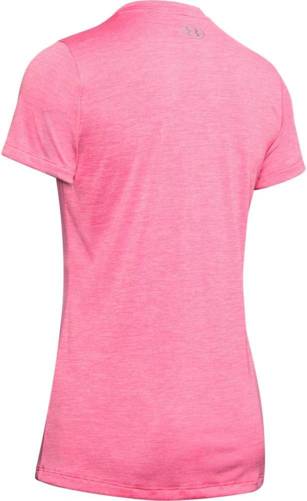 Under Armour Womens Tech V-Neck Twist Short-Sleeve T-Shirt(Mauve Pink (699)/Metallic Silver)