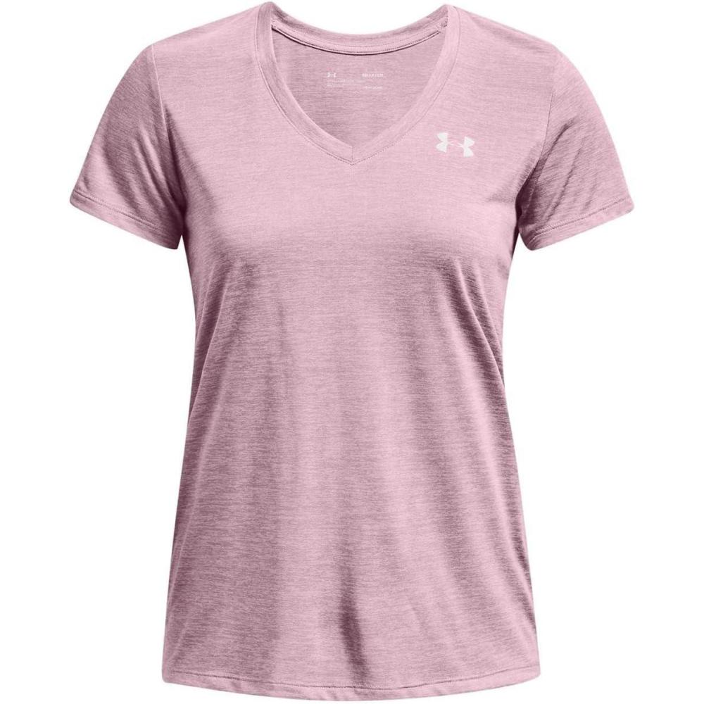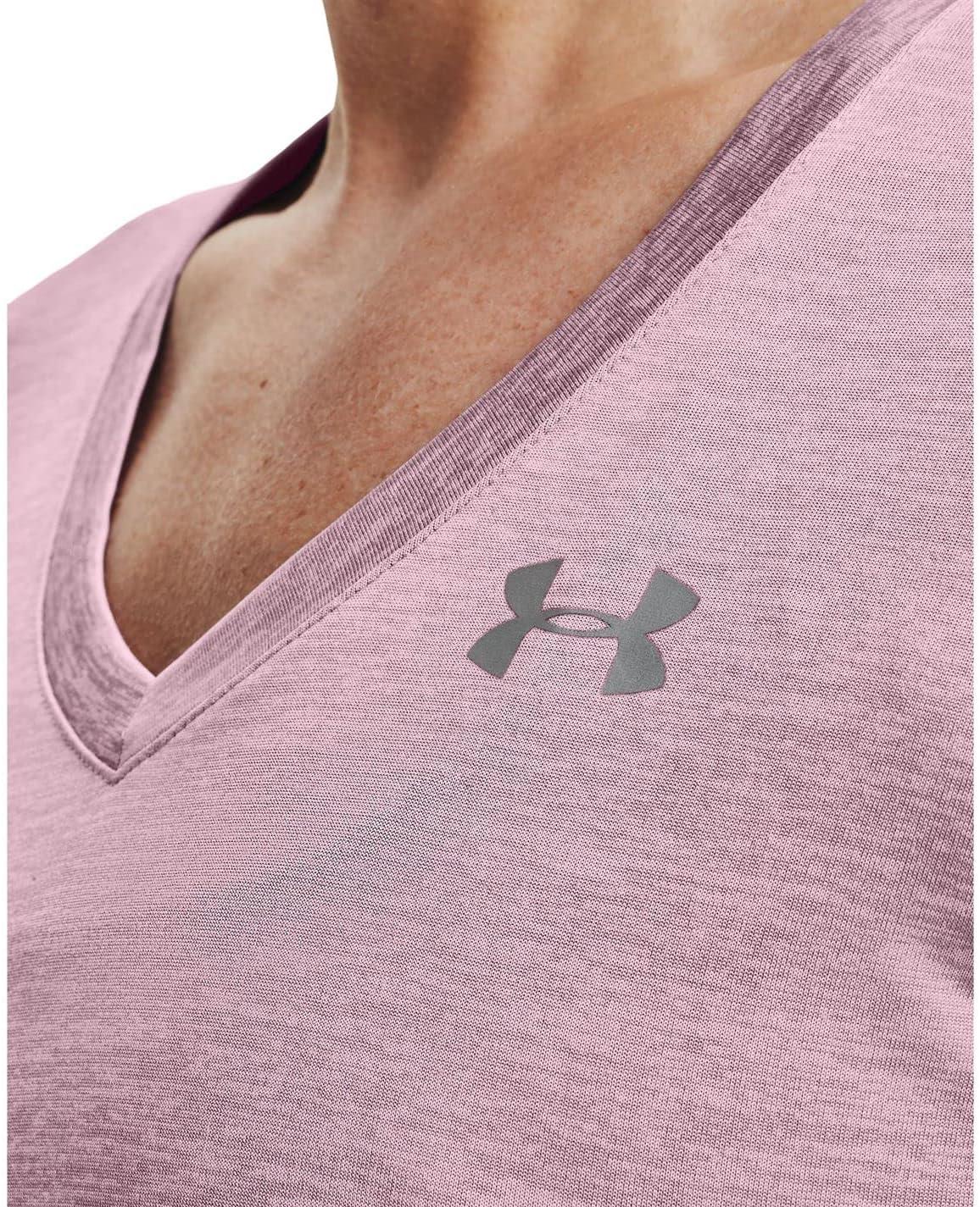 imageUnder Armour Womens Tech VNeck Twist ShortSleeve TShirtMauve Pink 699Metallic Silver