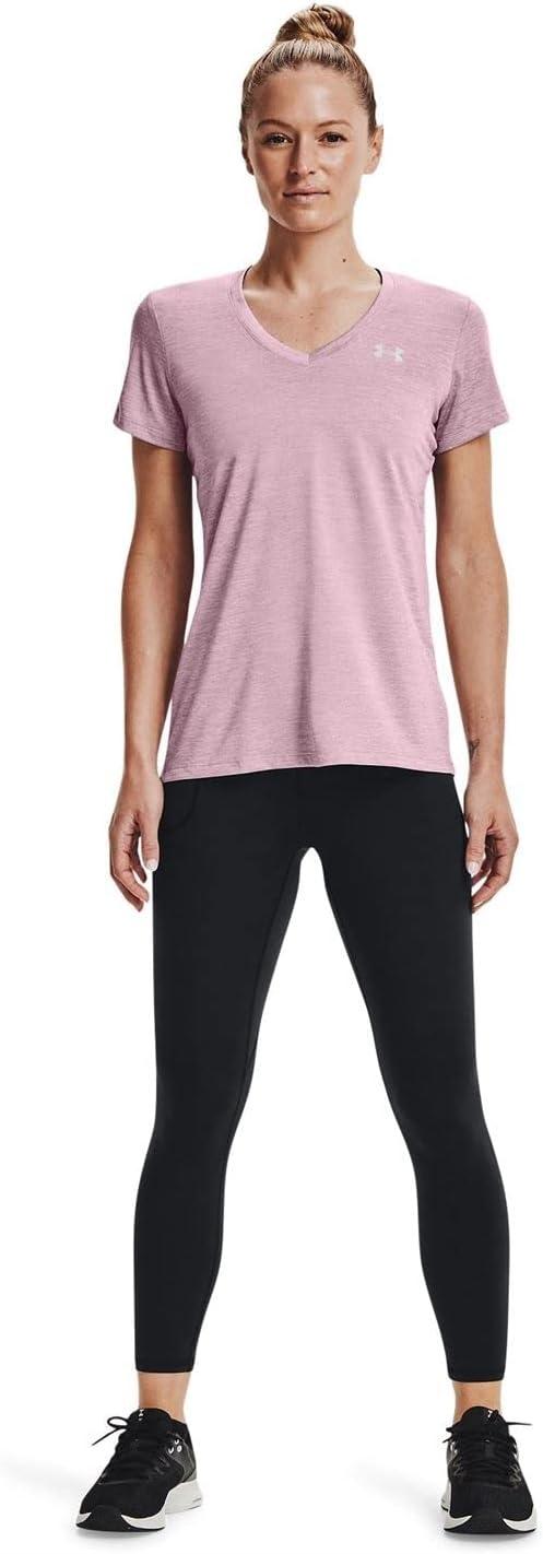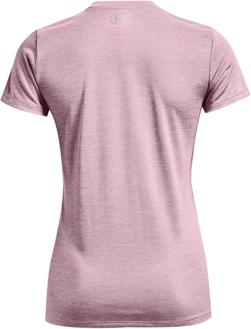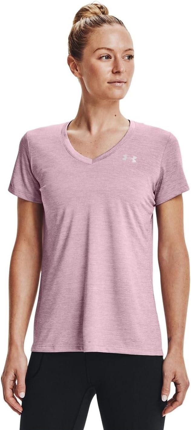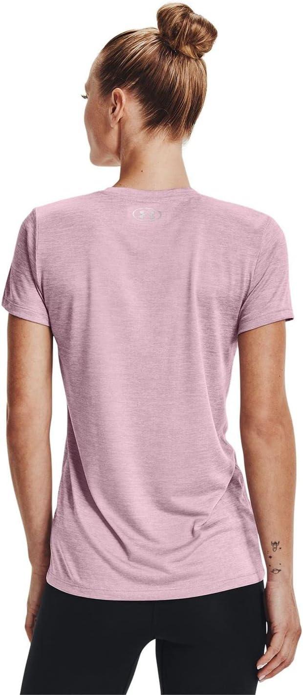 Under Armour Womens Tech V-Neck Twist Short-Sleeve T-Shirt(Mauve Pink (699)/Metallic Silver)
