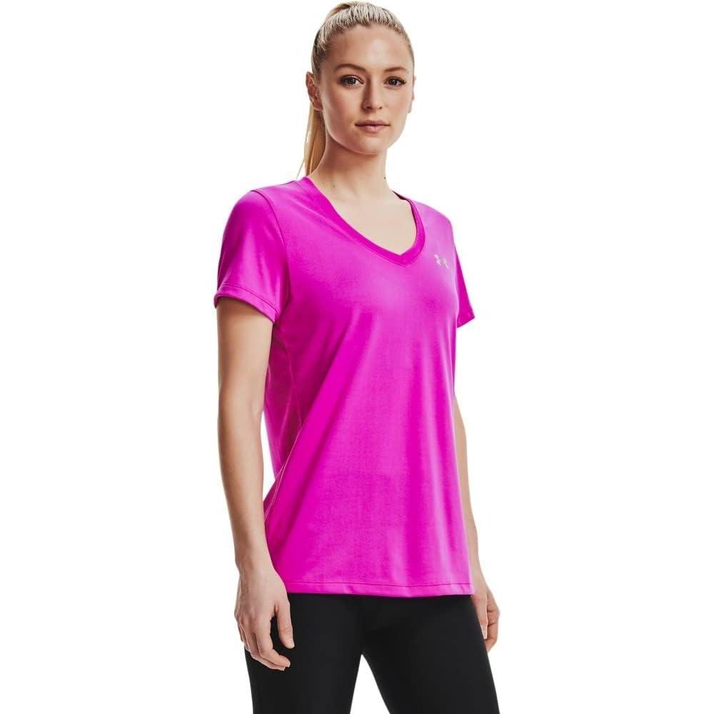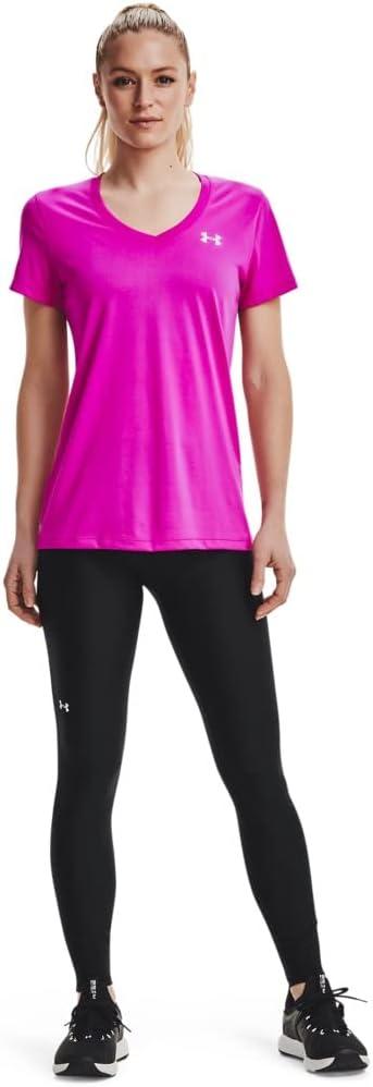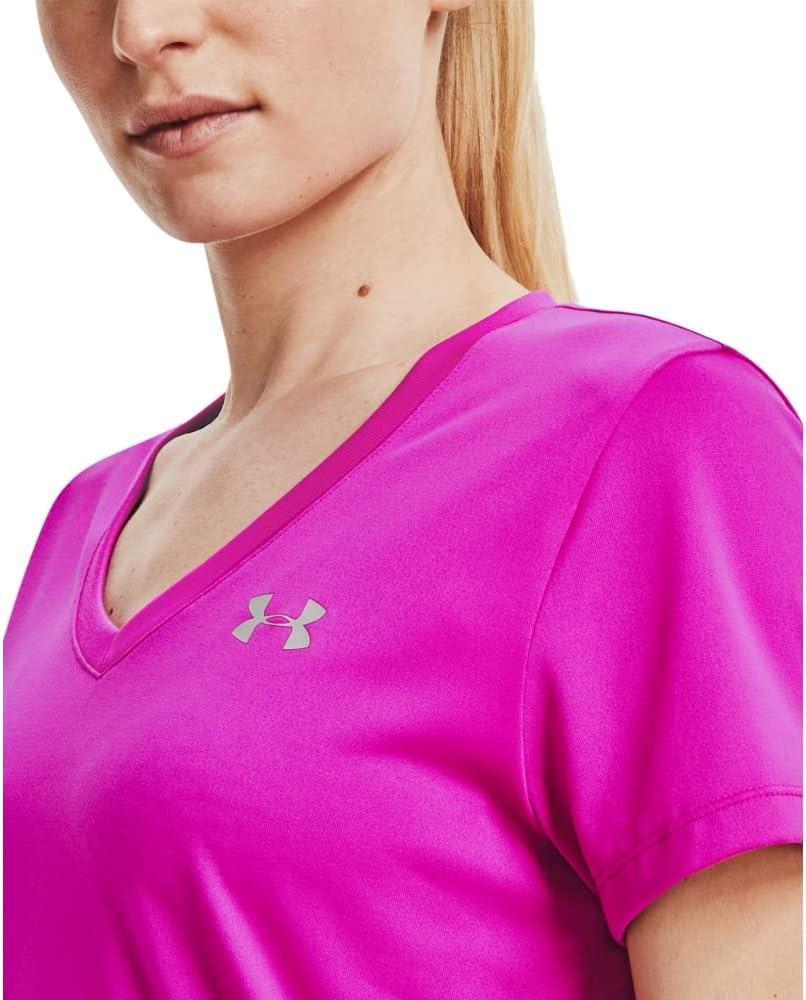 Under Armour Womens Tech V-Neck Twist Short-Sleeve T-Shirt(Meteor Pink (660)/Metallic Silver)