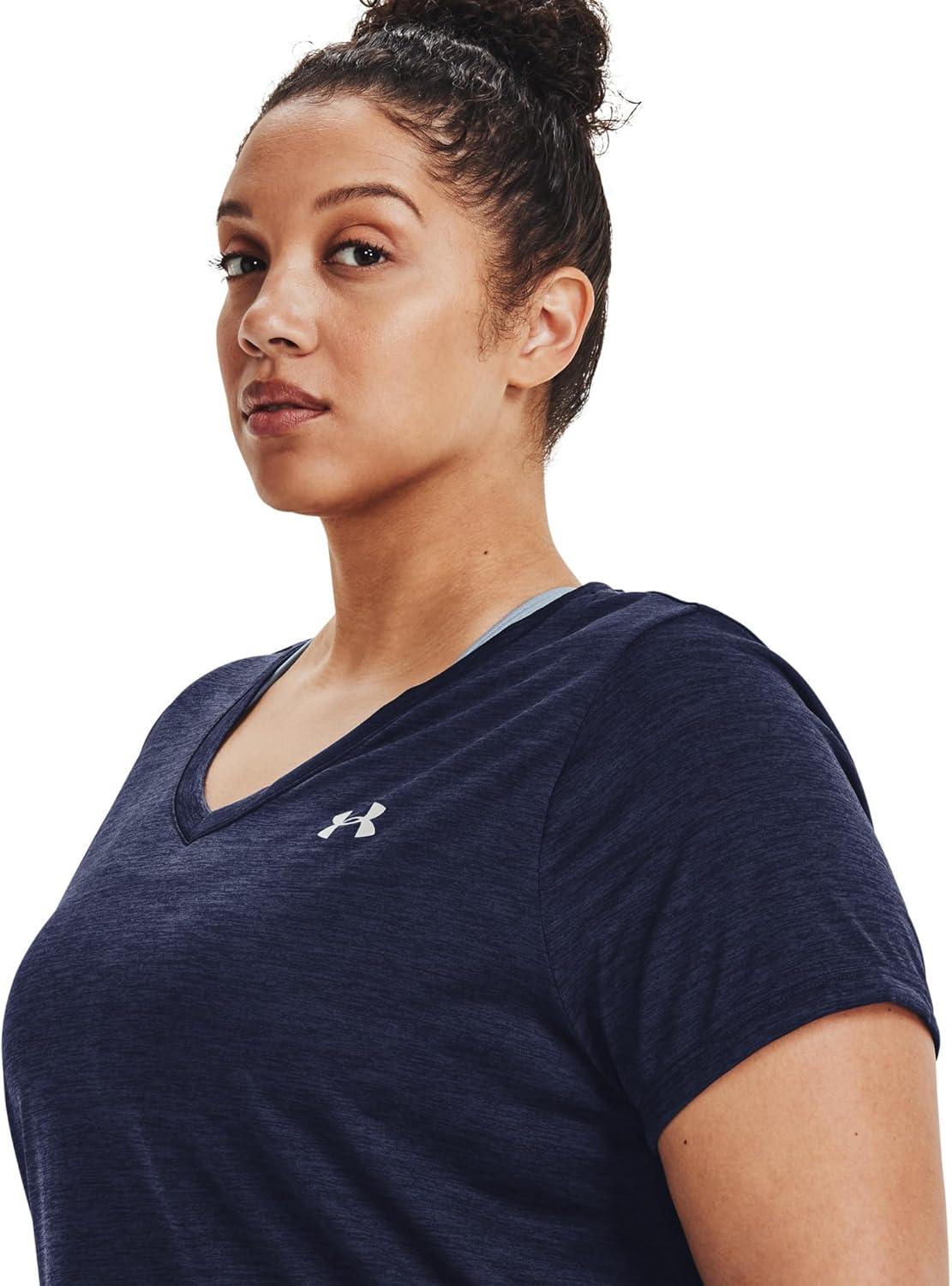 Under Armour Womens Tech V-Neck Twist Short-Sleeve T-Shirt(Midnight Navy (411)/Metallic Silver)