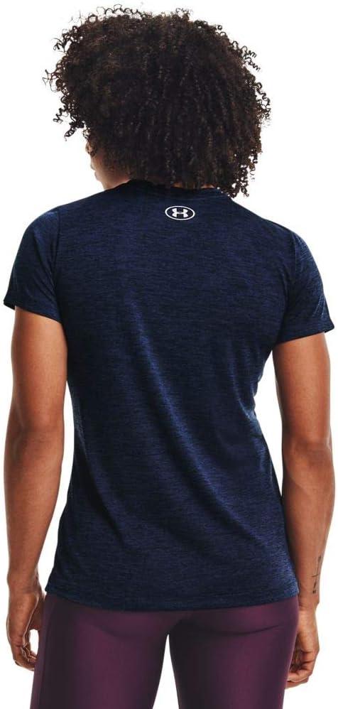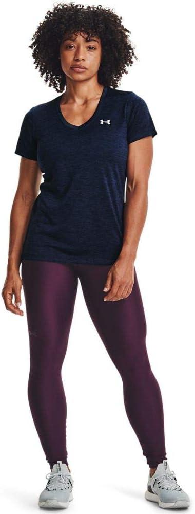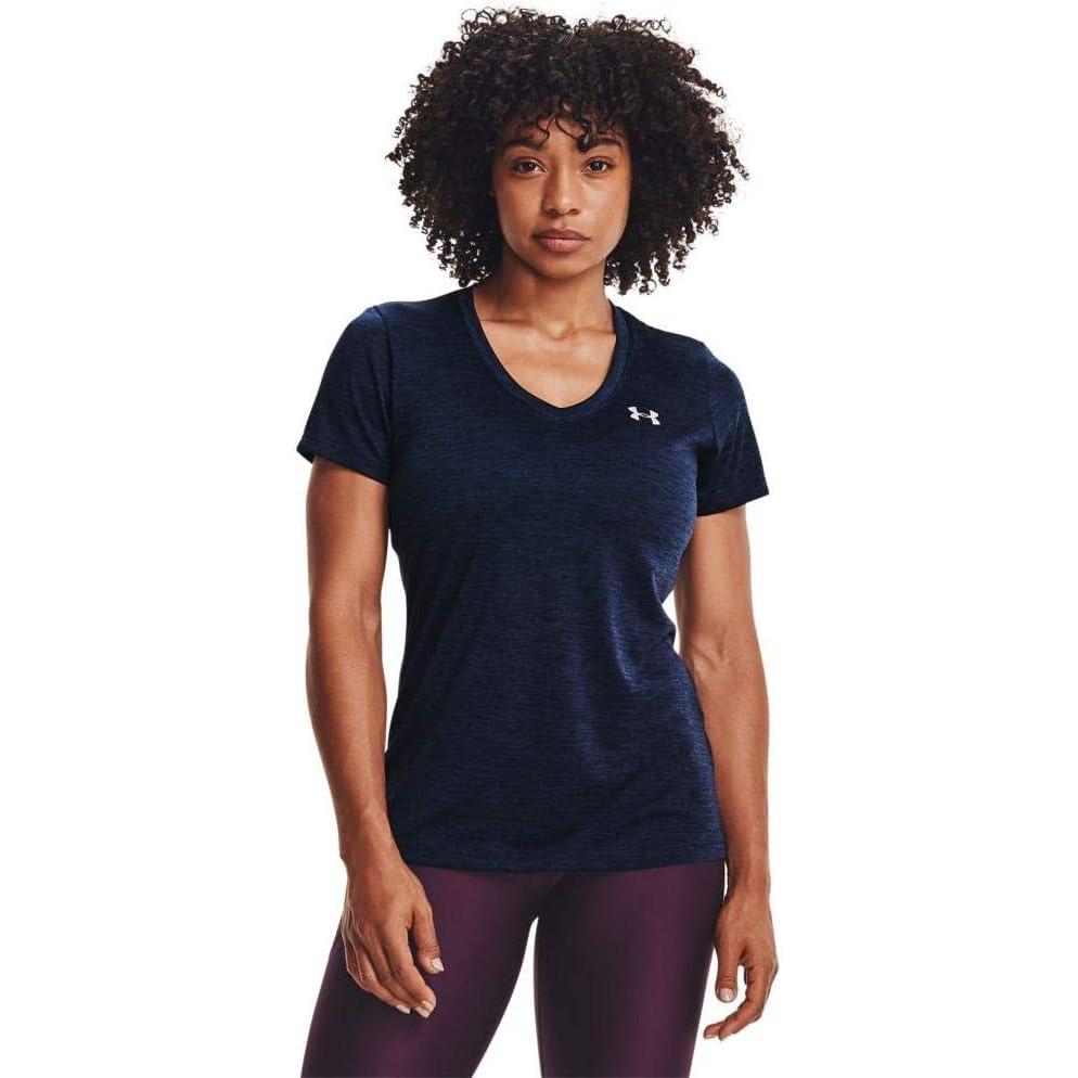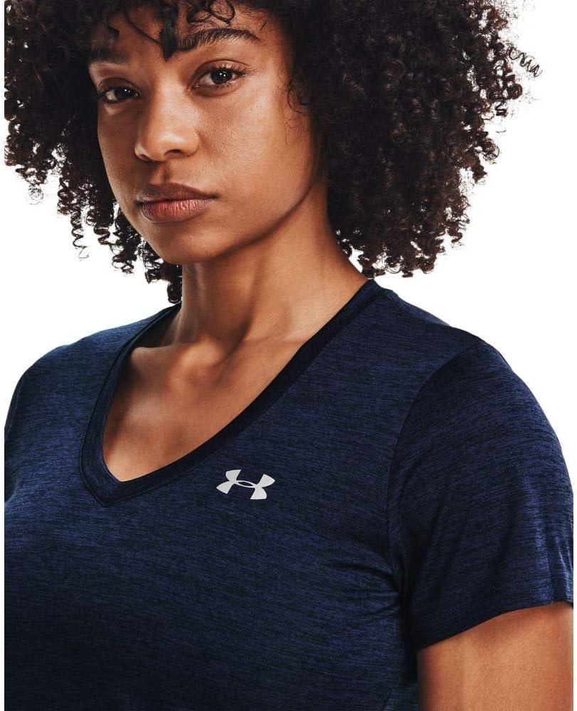 Under Armour Womens Tech V-Neck Twist Short-Sleeve T-Shirt(Midnight Navy (600)/Metallic Silver)