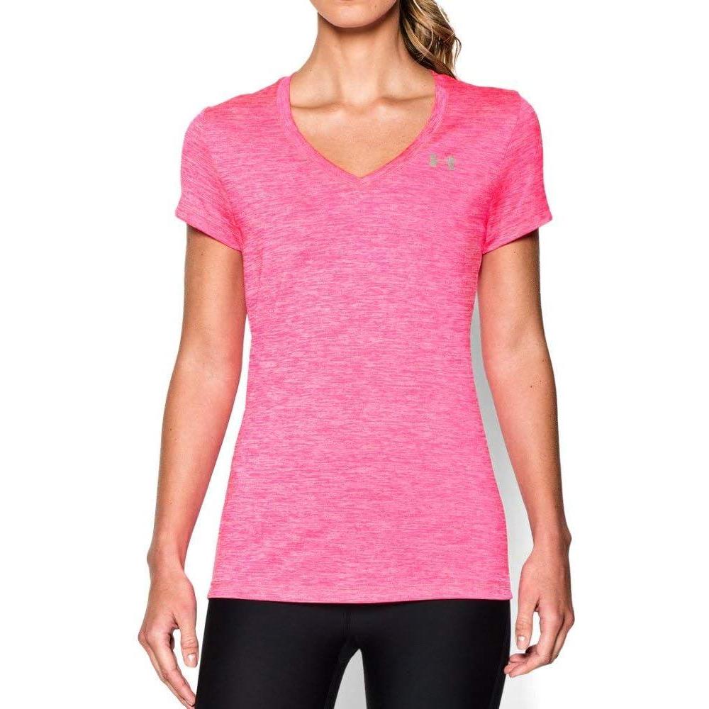 Under Armour Womens Tech V-Neck Twist Short-Sleeve T-Shirt(Mojo Pink (642)/Metallic Silver)