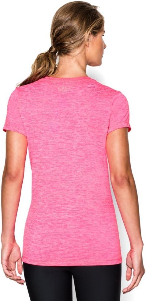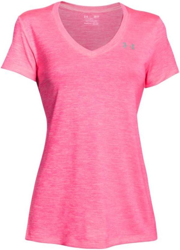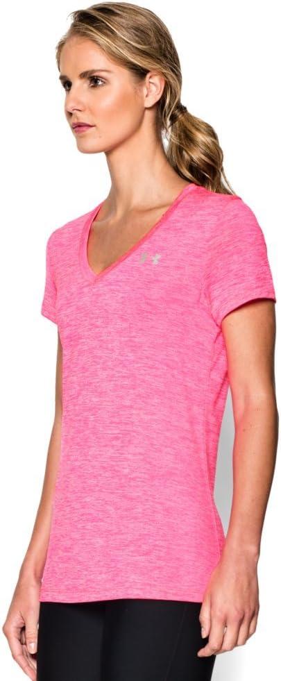 Under Armour Womens Tech V-Neck Twist Short-Sleeve T-Shirt(Mojo Pink/ Metallic Silver)