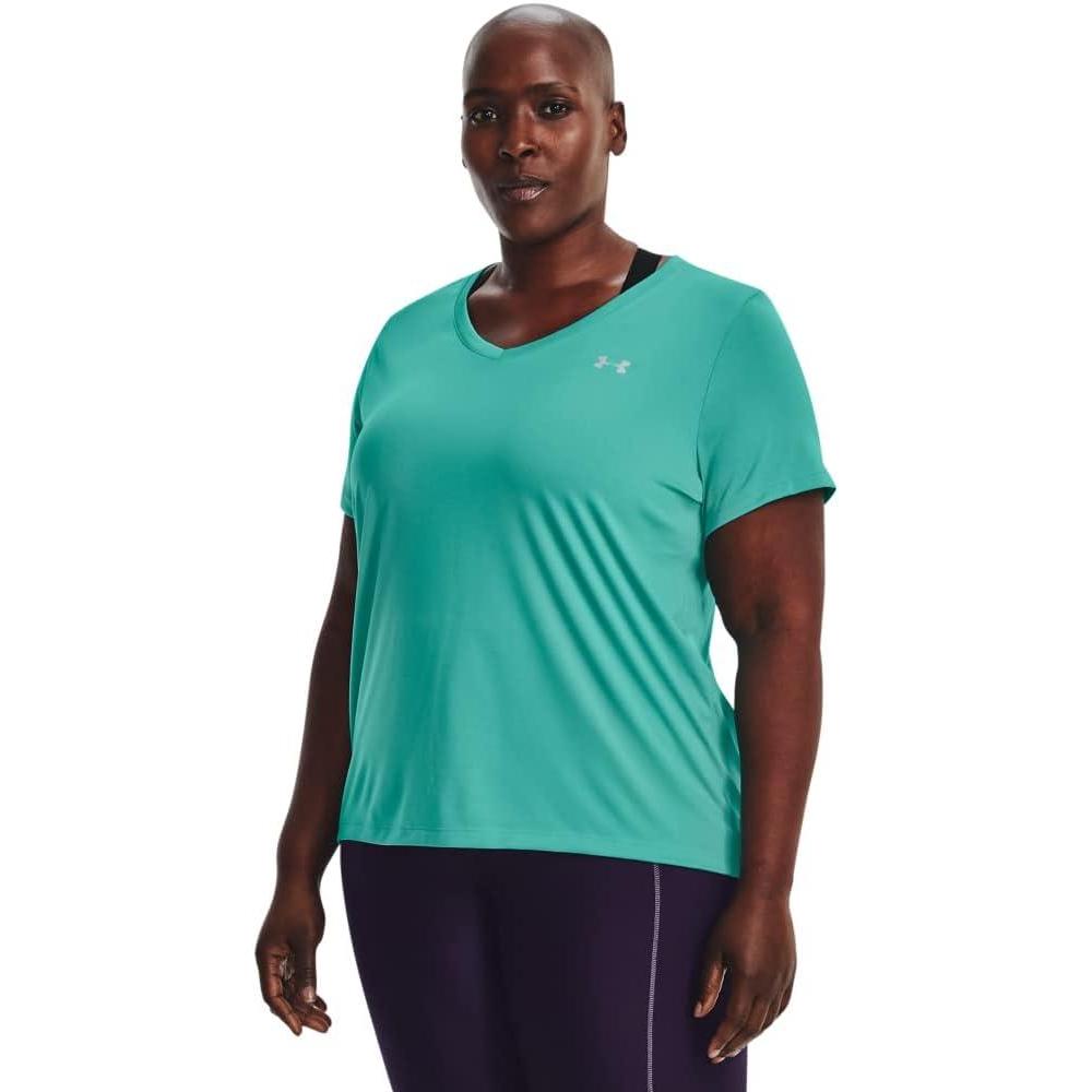 Under Armour Womens Tech V-Neck Twist Short-Sleeve T-Shirt(Neptune (369)/Green)