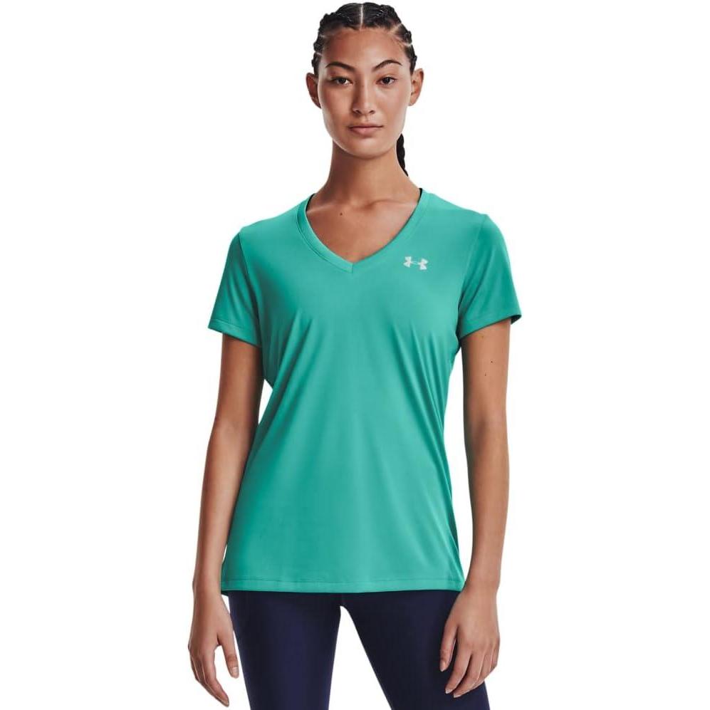 Under Armour Womens Tech V-Neck Twist Short-Sleeve T-Shirt(Neptune (369)/Metallic Silver)
