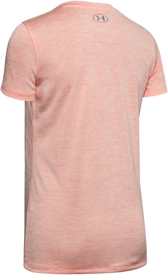 Under Armour Womens Tech V-Neck Twist Short-Sleeve T-Shirt(Peach Frost (848)/Metallic Silver)