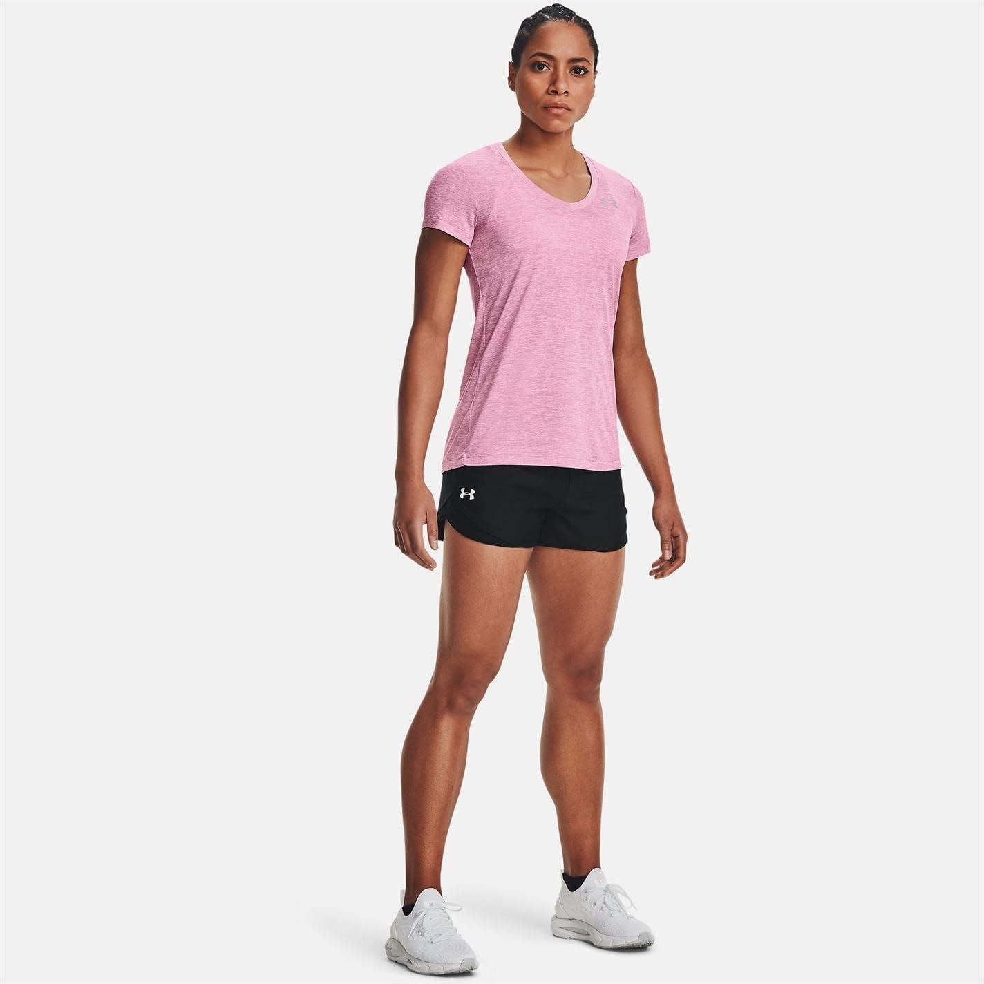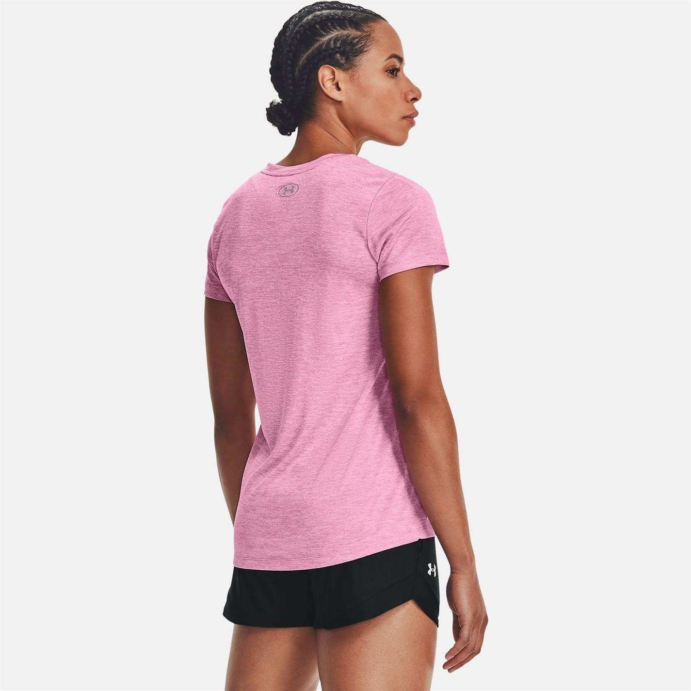 imageUnder Armour Womens Tech VNeck Twist ShortSleeve TShirtPlanet Pink 680Metallic Silver