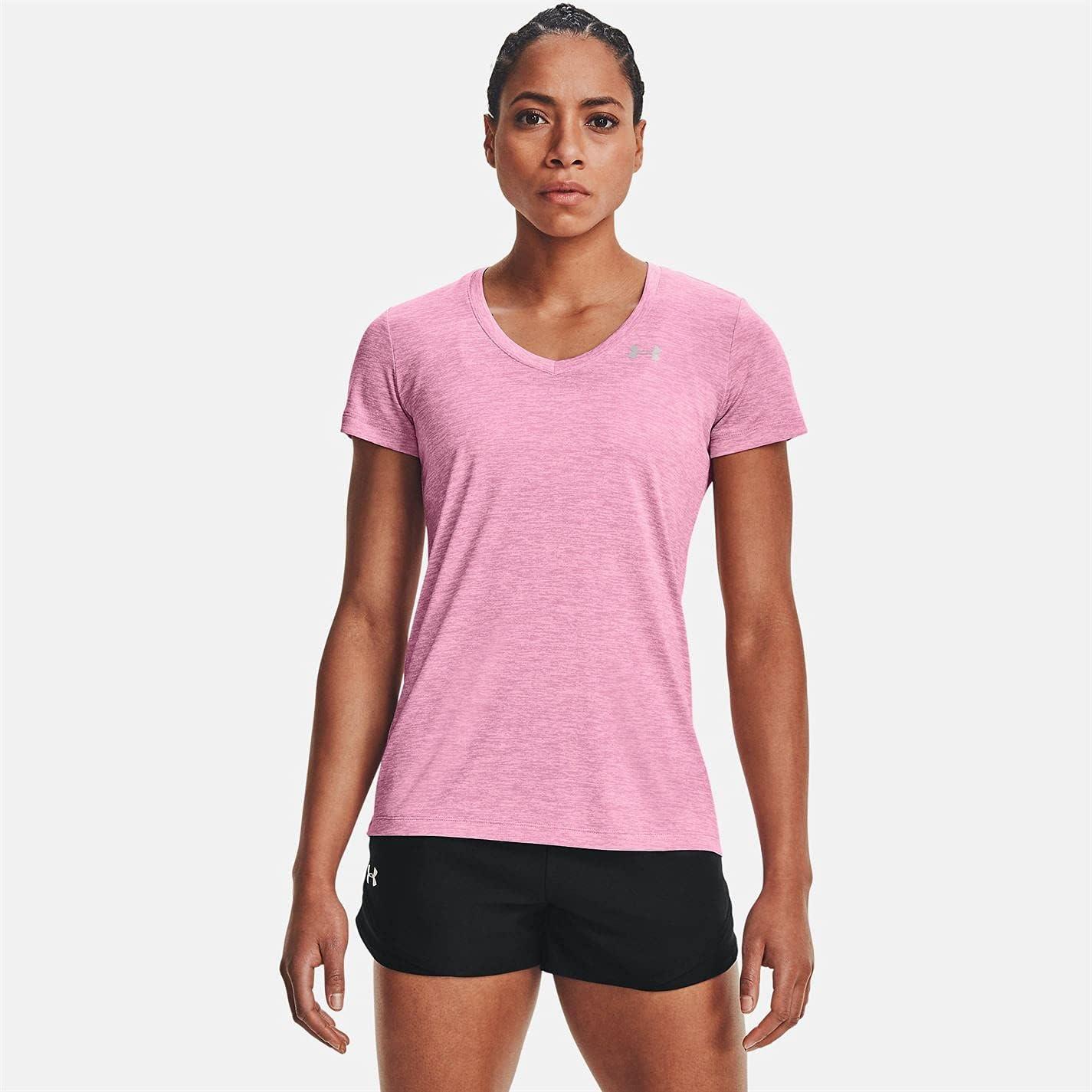 Under Armour Womens Tech V-Neck Twist Short-Sleeve T-Shirt(Pink Lemonade (668)/Tonal)