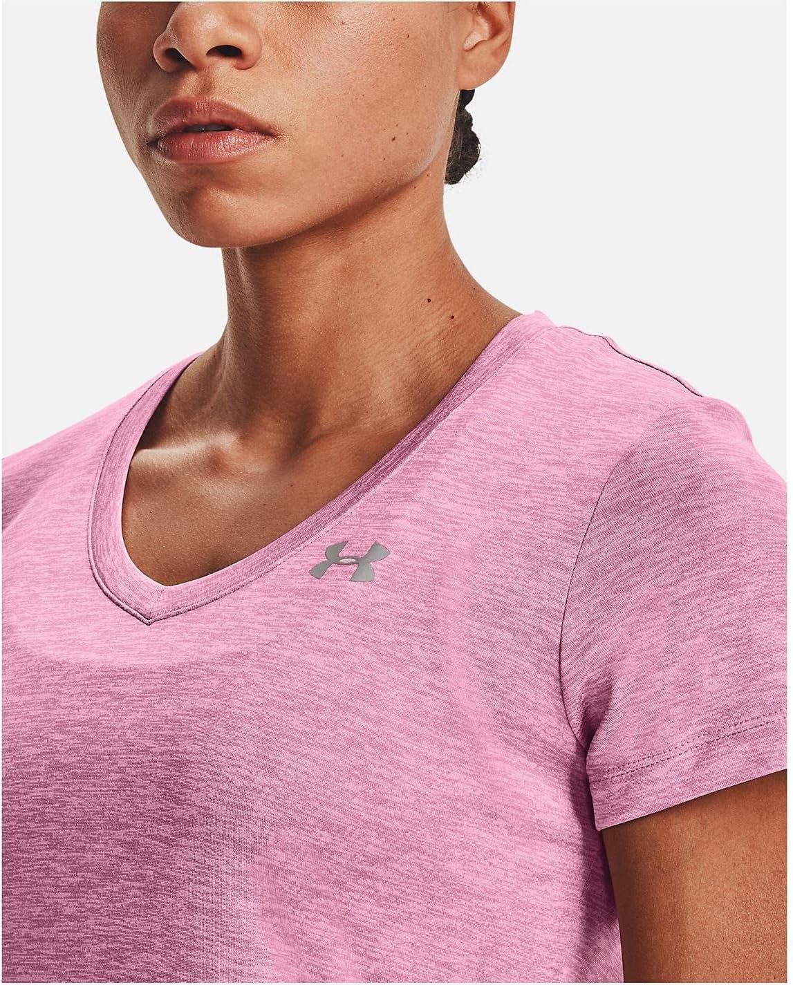 Under Armour Womens Tech V-Neck Twist Short-Sleeve T-Shirt(Planet Pink (680)/Metallic Silver)