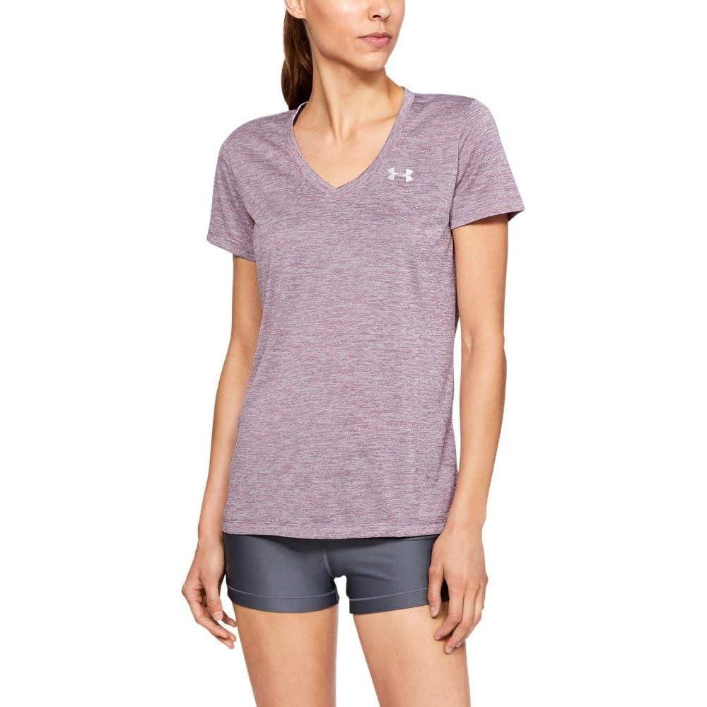 Under Armour Womens Tech V-Neck Twist Short-Sleeve T-Shirt(Purple Tint (532)/Metallic Silver)