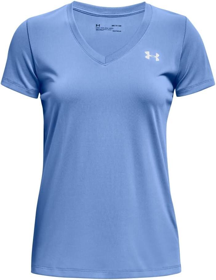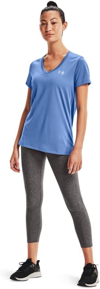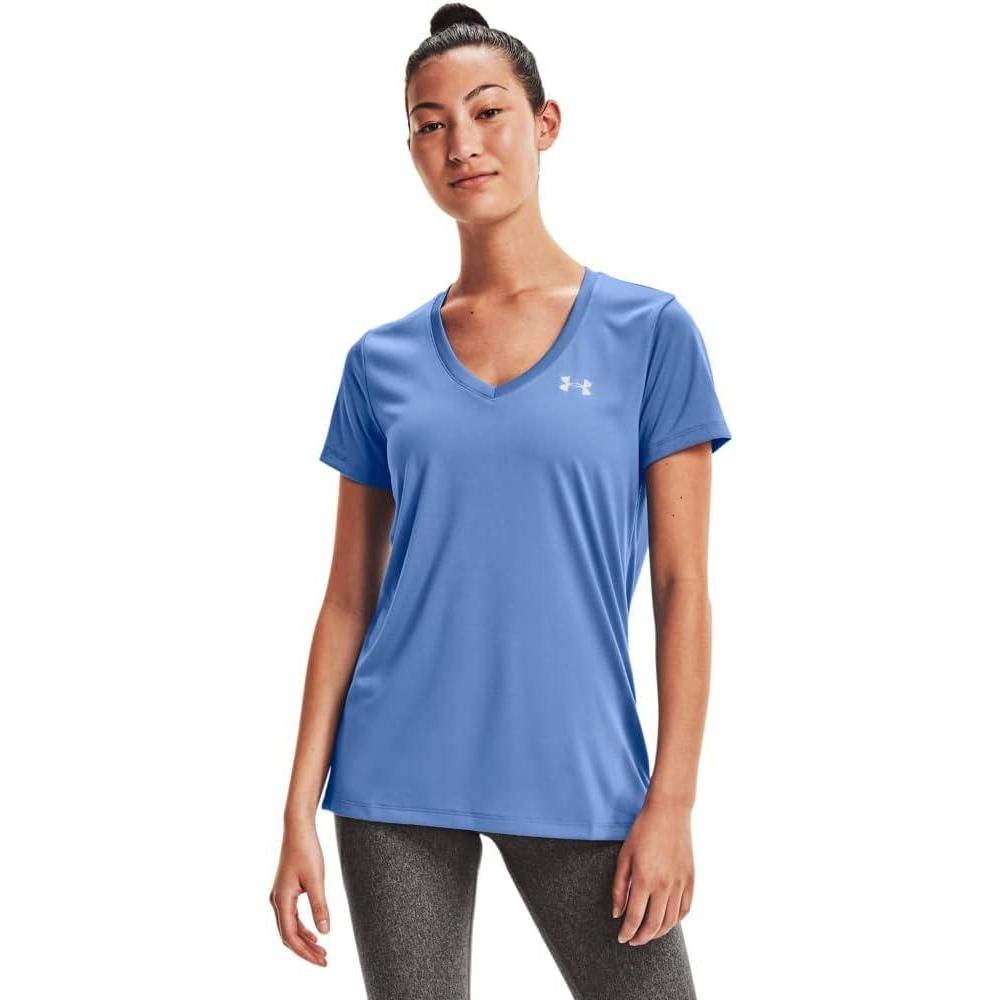Under Armour Womens Tech V-Neck Twist Short-Sleeve T-Shirt(River (488)/Metallic Silver)