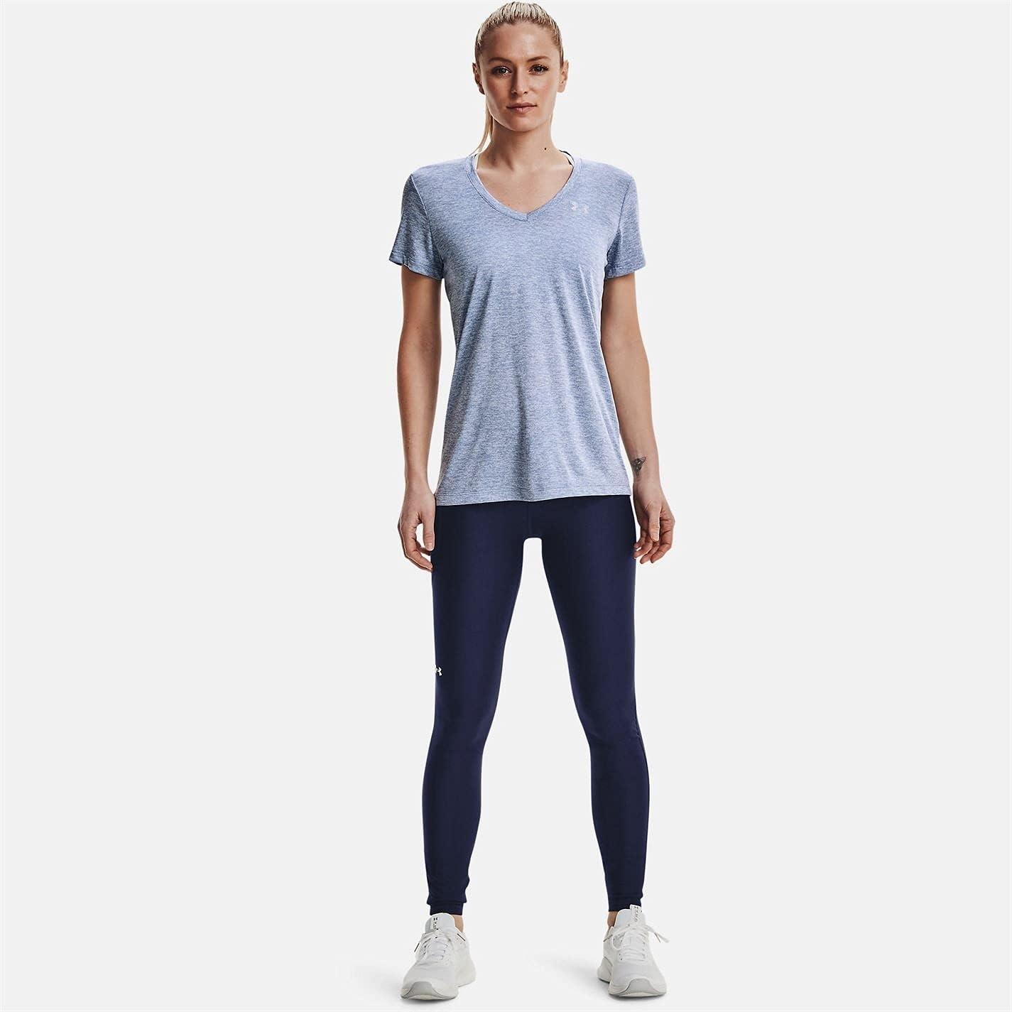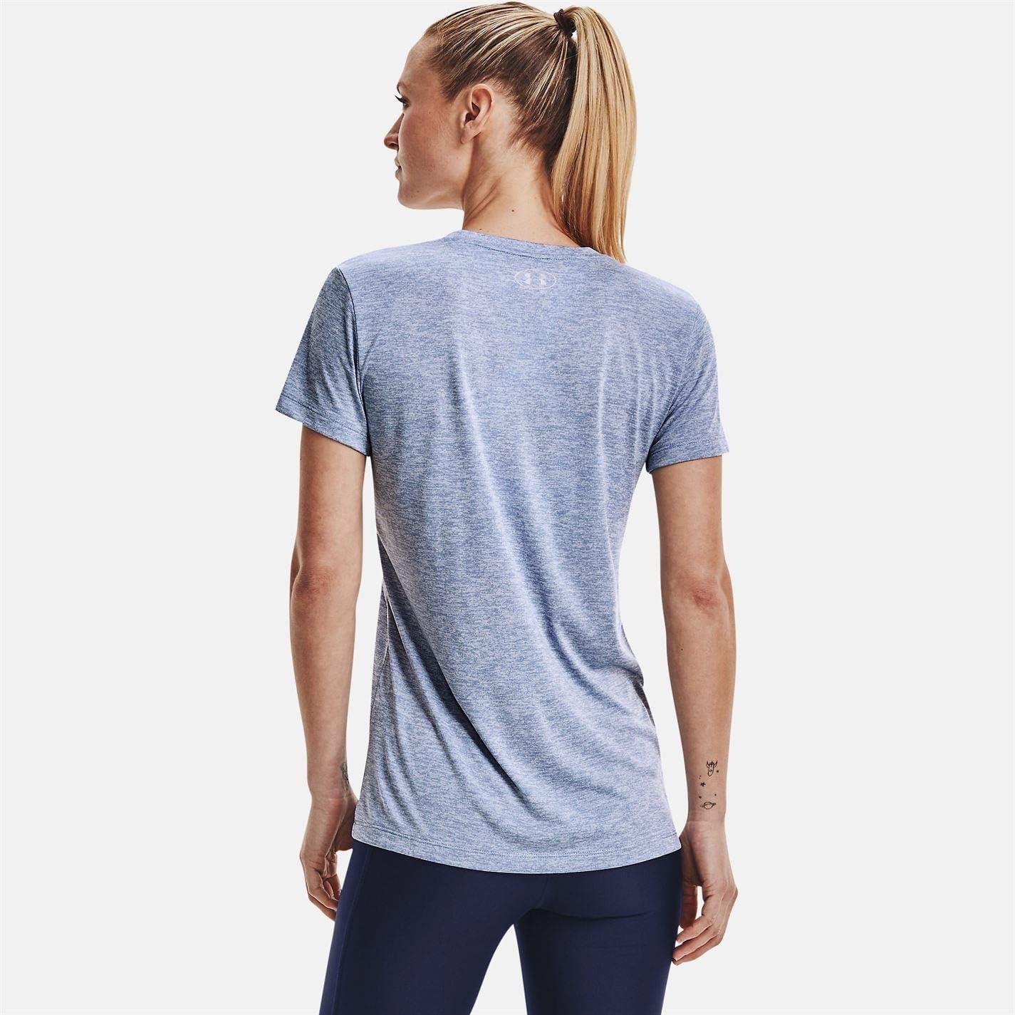 Under Armour Womens Tech V-Neck Twist Short-Sleeve T-Shirt(Washed Blue (421)/Metallic Silver)
