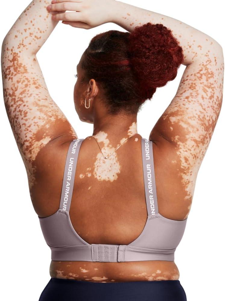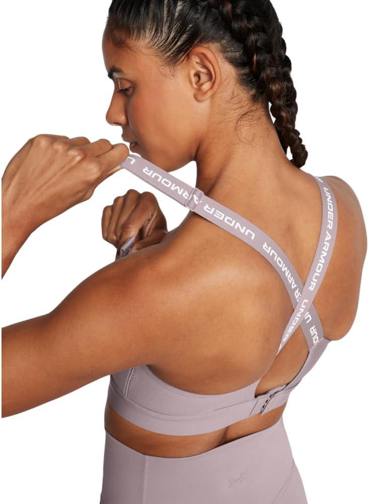 Delivers strategic support, tailored for high-support activities like running, court sports, field sports & aerobics. Molded, PU injected one-piece padding for ultimate comfort & added coverage. Mesh panels for added breathability. Smooth, sweat-wicking band has easy hook & eye closure for easy on & off. Adjustable criss-cross straps with wordmark detail for a custom fit. HeatGear fabric delivers superior next-to-skin feel. Material wicks sweat & dries really fast.