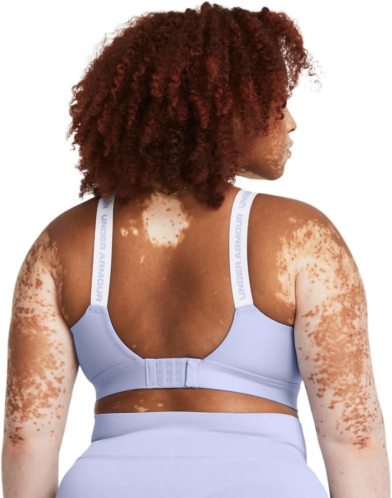 Delivers strategic support, tailored for high-support activities like running, court sports, field sports & aerobics. Molded, PU injected one-piece padding for ultimate comfort & added coverage. Mesh panels for added breathability. Smooth, sweat-wicking band has easy hook & eye closure for easy on & off. Adjustable criss-cross straps with wordmark detail for a custom fit. HeatGear fabric delivers superior next-to-skin feel. Material wicks sweat & dries really fast.