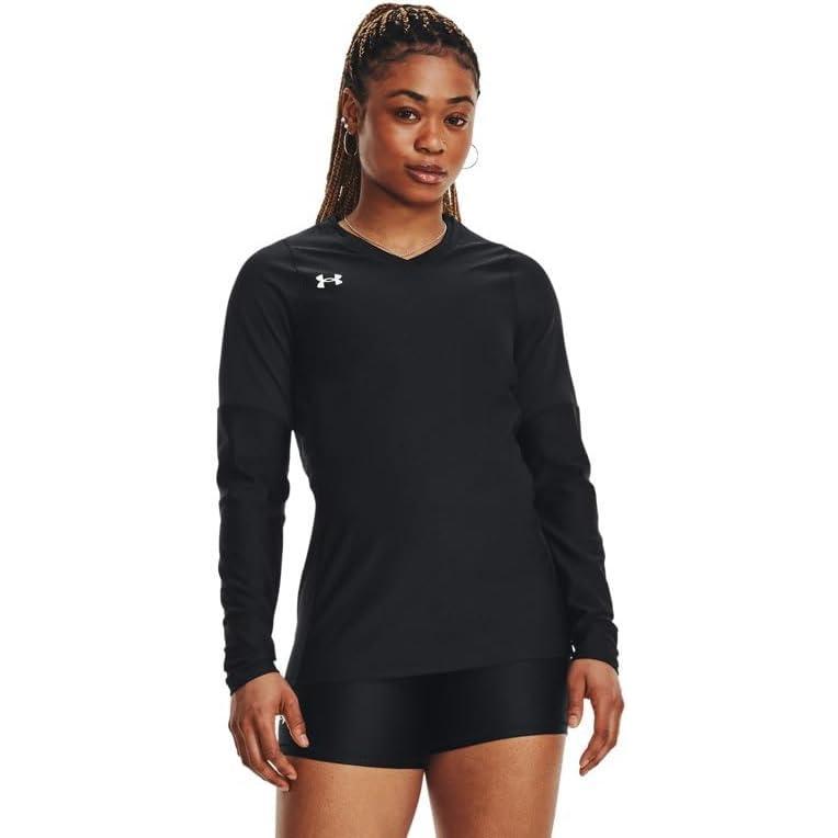 Under Armour Womens UA Volleyball Powerhouse 2.0 Long Sleeve Jersey – HeatGear Fabric with Mesh Panels(Black / White)