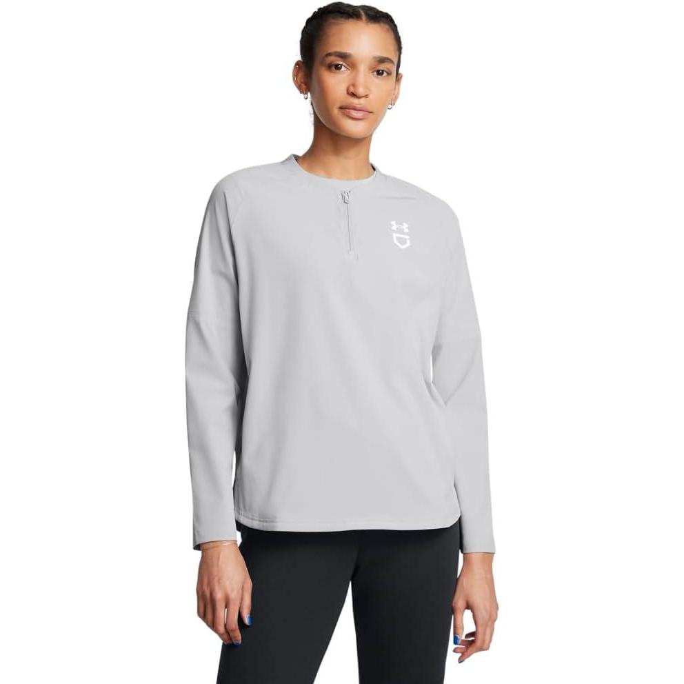 This is your new super-durable jacket for BP and warm ups, built from materials that stretch to give you full movement, while dumping heat to help keep you comfortable. UA Storm technology repels water without sacrificing breathability. Durable, stretch-woven fabric is ultra-lightweight & lets you move. 4-way stretch material moves better in every direction. Back vent & underarm mesh panels for added breathability. Side-vent bottom hem. Rip stitch convertible sleeves so you can cut at the elbow seam for a short sleeve. Open hand pockets. Shaped hem. . . 87% Polyester/13% Elastane.