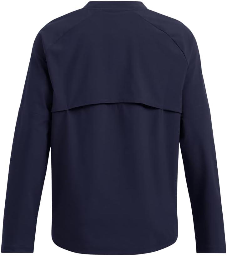 This is your new super-durable jacket for BP and warm ups, built from materials that stretch to give you full movement, while dumping heat to help keep you comfortable. UA Storm technology repels water without sacrificing breathability. Durable, stretch-woven fabric is ultra-lightweight & lets you move. 4-way stretch material moves better in every direction. Back vent & underarm mesh panels for added breathability. Side-vent bottom hem. Rip stitch convertible sleeves so you can cut at the elbow seam for a short sleeve. Open hand pockets. Shaped hem. . . 87% Polyester/13% Elastane.