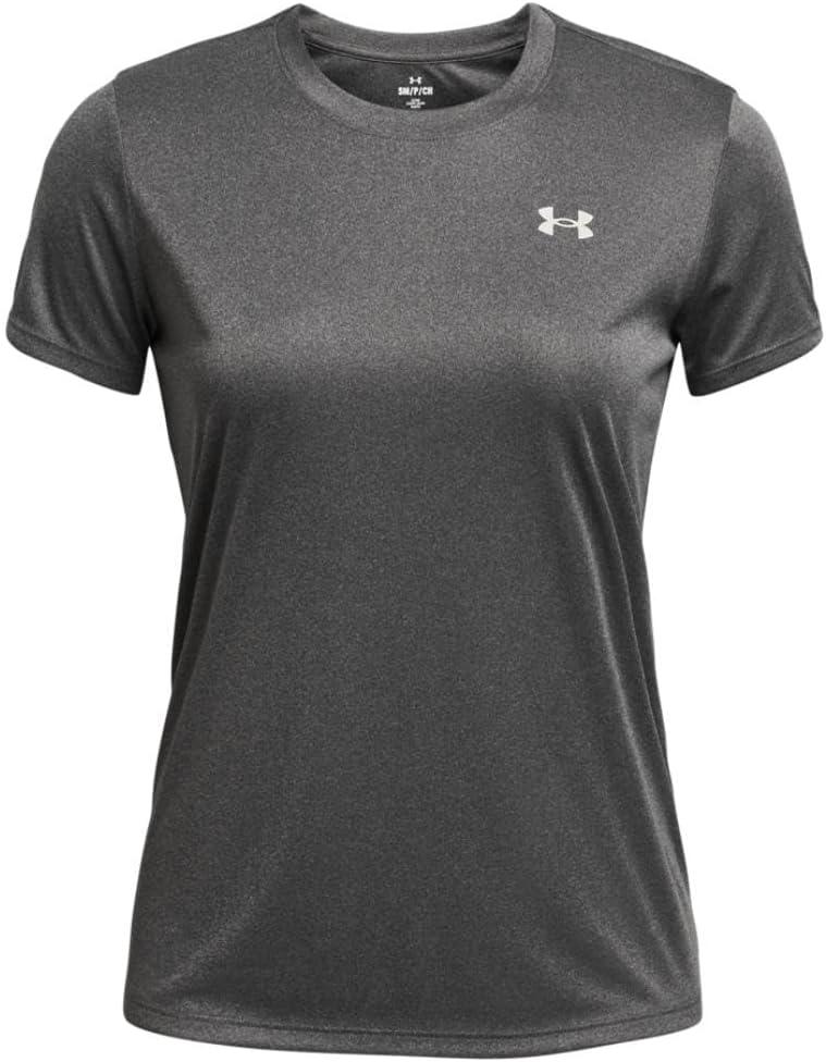 Under Armour Womens Velocity Solid Short Sleeve Crew Neck T Shirt((025) Castlerock Medium Heather / / Metallic Silver)