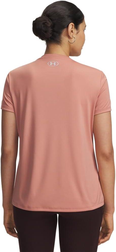Under Armour Womens Velocity Solid Short Sleeve Crew Neck T Shirt((696) Canyon Pink / / Metallic Silver)