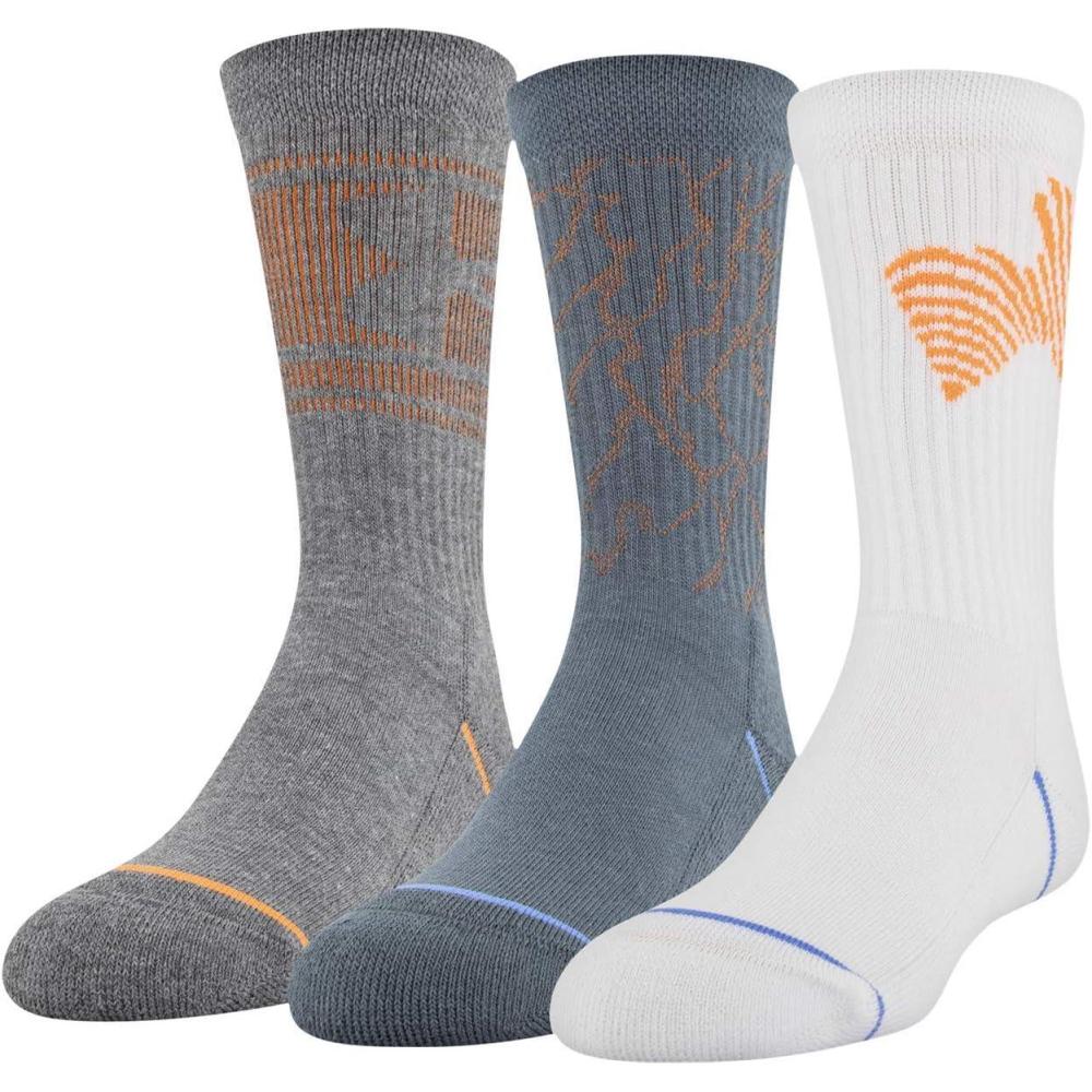 Under Armour Youth Phenom Crew Socks, 3-Pairs(Orange/Gray Assorted)