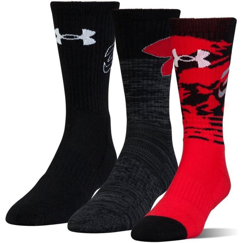 Under Armour Youth Phenom Crew Socks, 3-Pairs(Red Assorted)