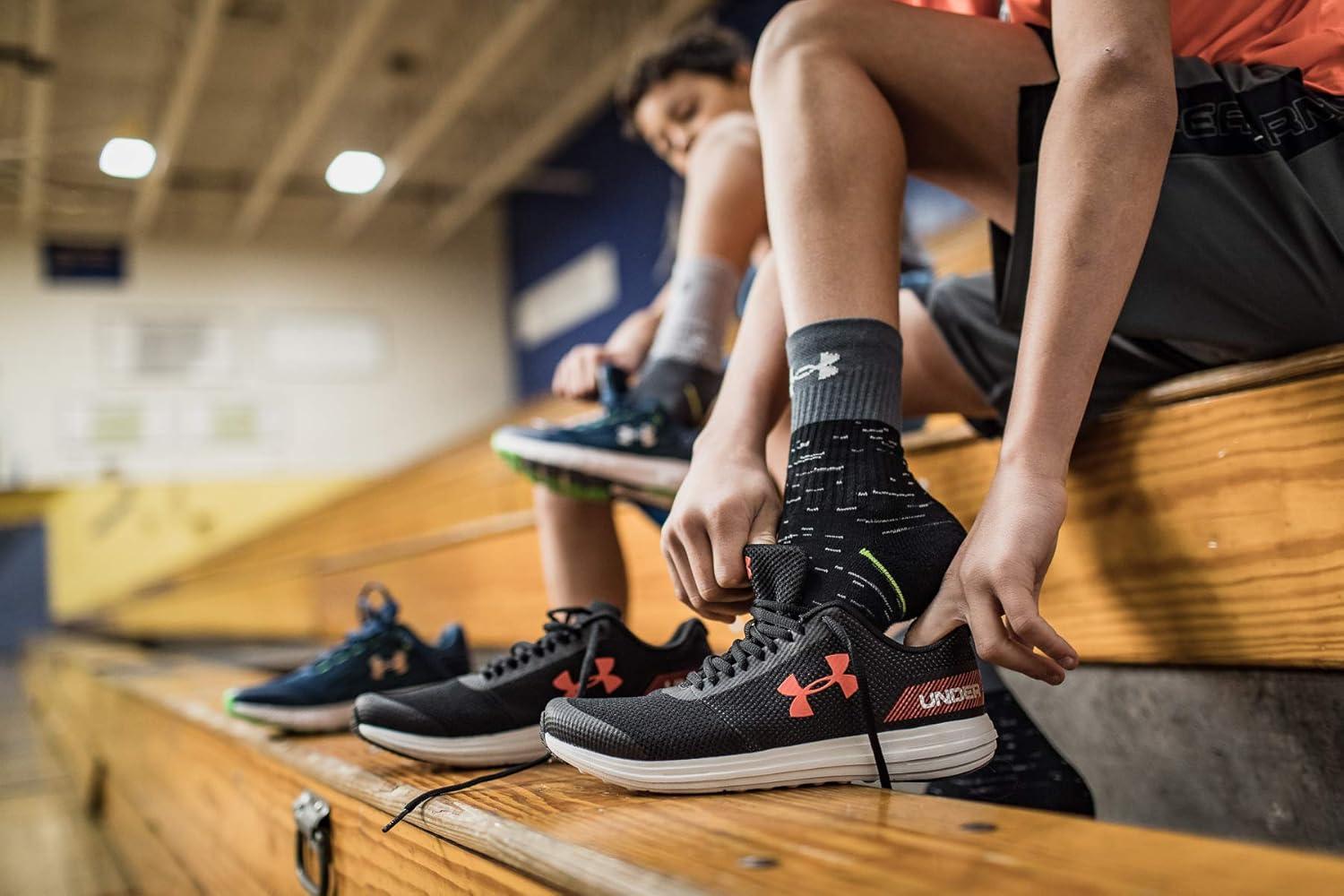 Under Armour Youth Phenom Crew Socks, 3-Pairs(Vapor Green Assorted)