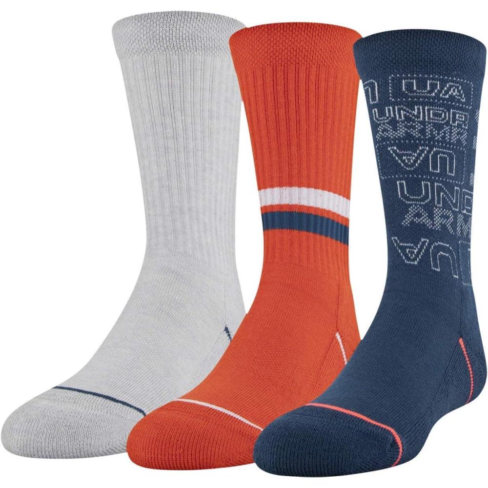 Under Armour Youth Phenom Crew Socks, 3-Pairs(True Ink Blue Assorted)