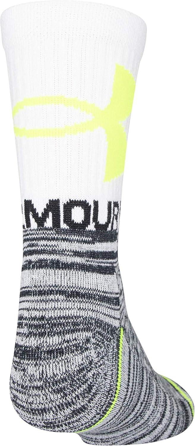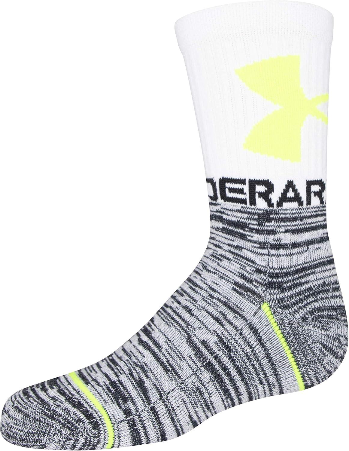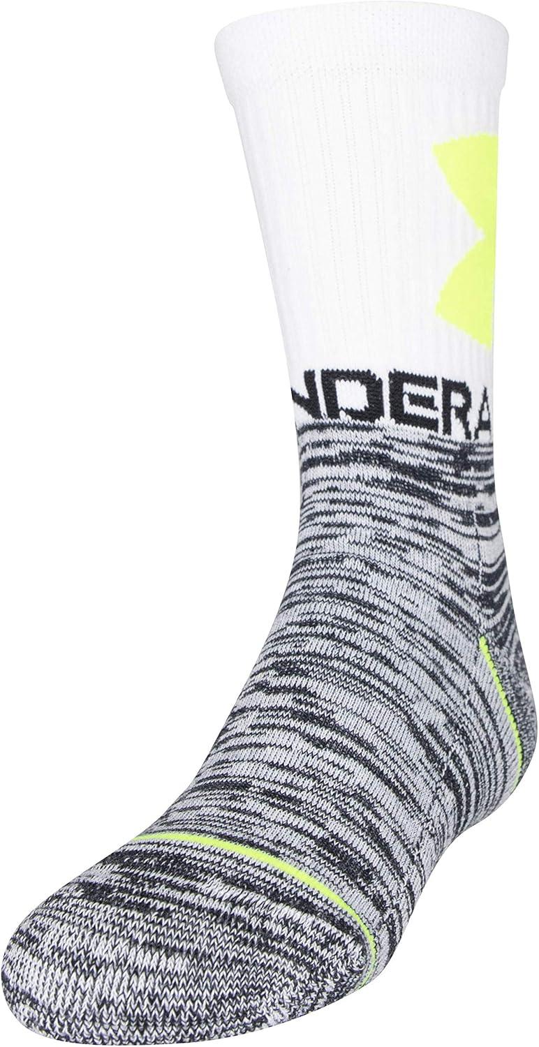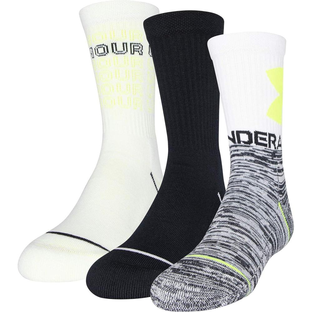 Under Armour Youth Phenom Crew Socks, 3-Pairs(White/High Vis Yellow Assorted)